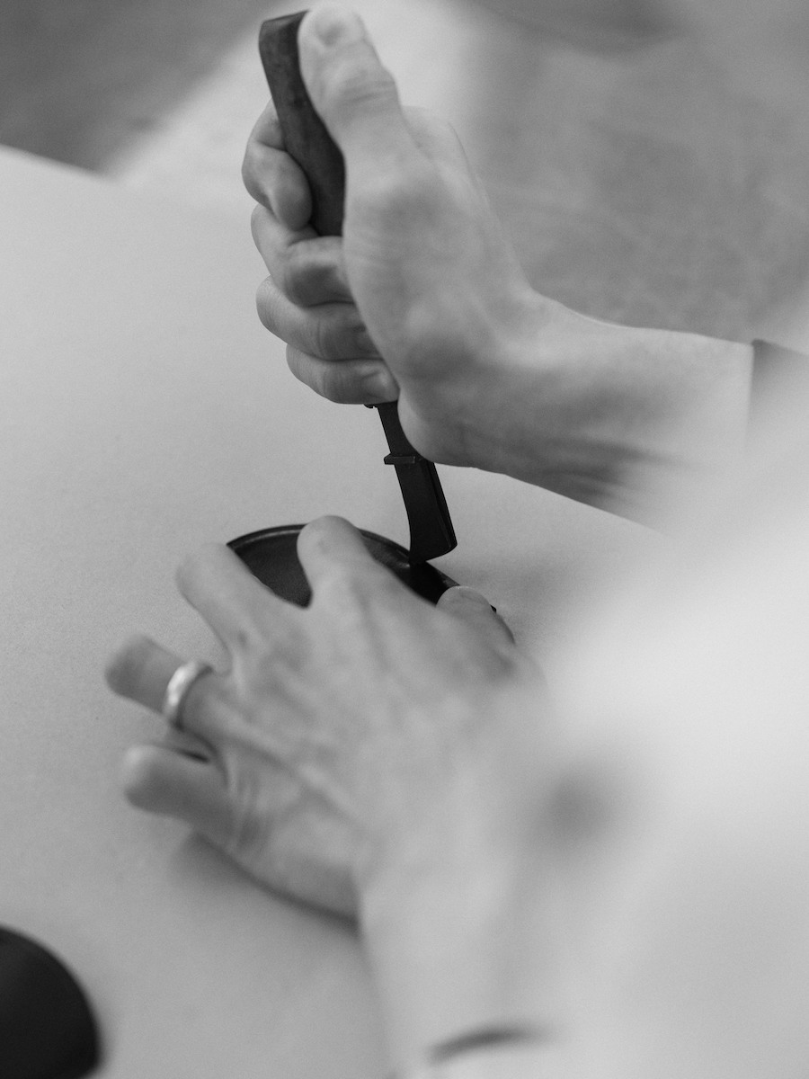 創業当初から掲げる「一針入魂」の精神のもと、日本の職人が1つ1つ丁寧に仕上げた。型抜から縫製まで、あらゆる工程でミリ単位で調整する。そのため、作ることのできる個数は1日1つまでだという。