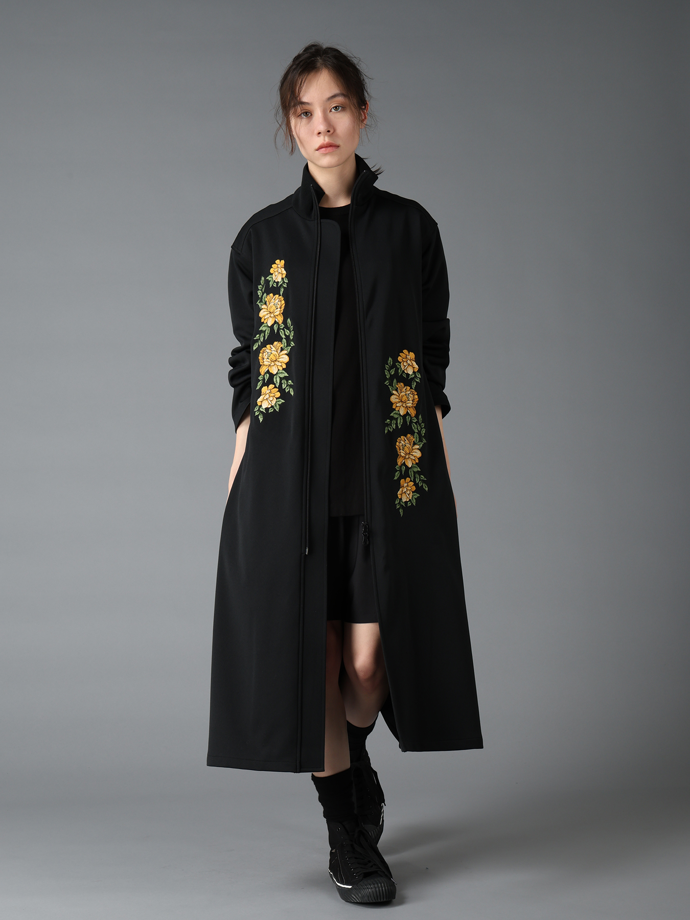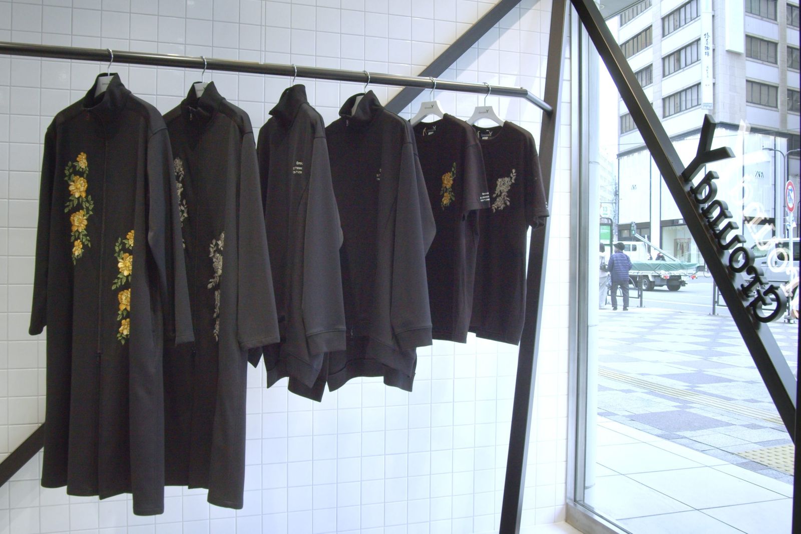 池袋パルコ店のオープンを記念して、ユニークな刺しゅうを施した同店限定のアイテム3型も発売した。首リブのロングブラウス(7万7000円)、サイドスリットトラックジャケット(8万300円)、刺しゅうカットソー(2万4200円)を展開し、いずれもフリーサイズで、ブラック×イエロー、ブラック×グレーの2色展開。さらに3万3000円以上の購入客に先着でオリジナルの2WAYバッグを配布している(なくなり次第終了)。