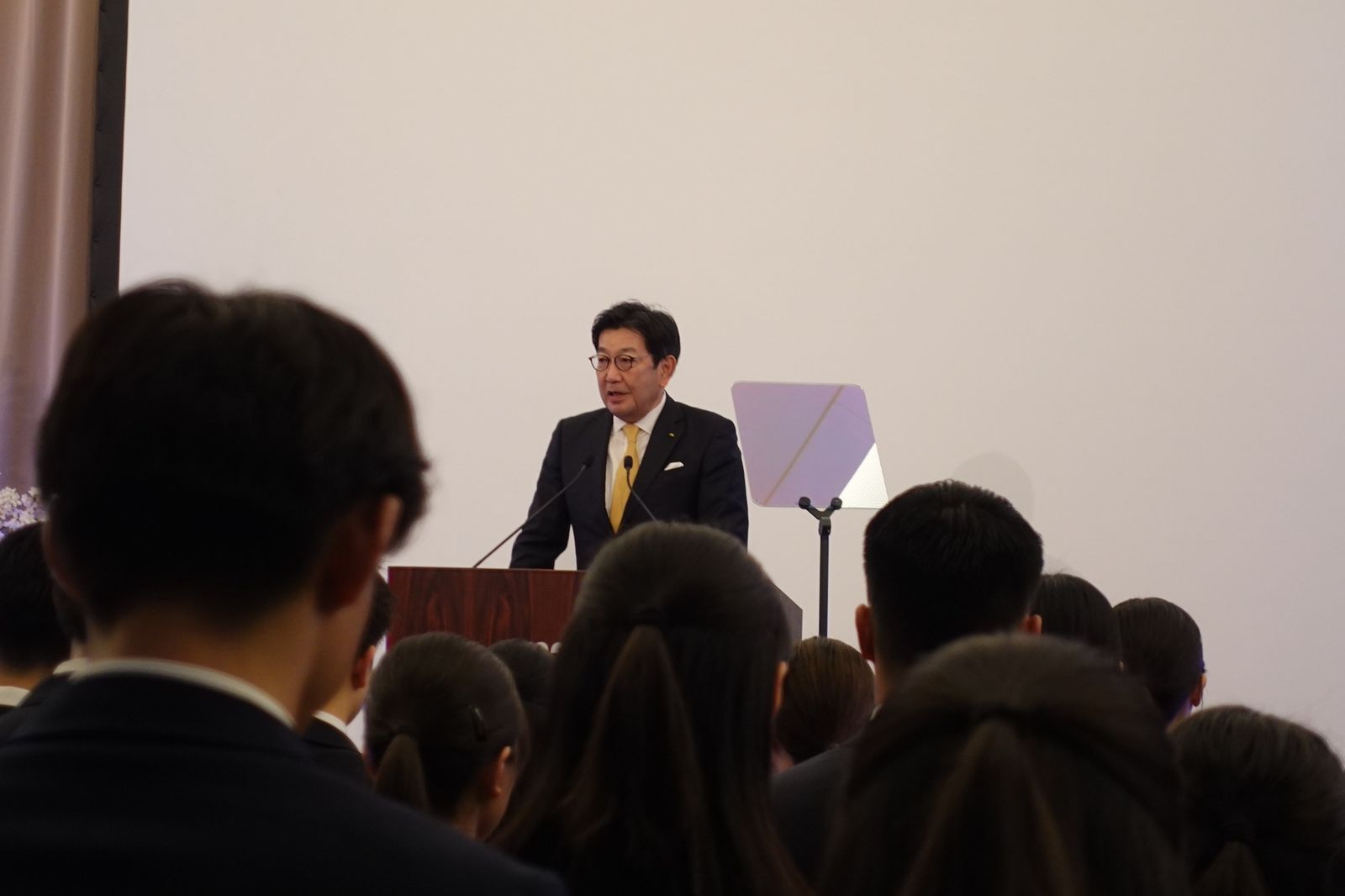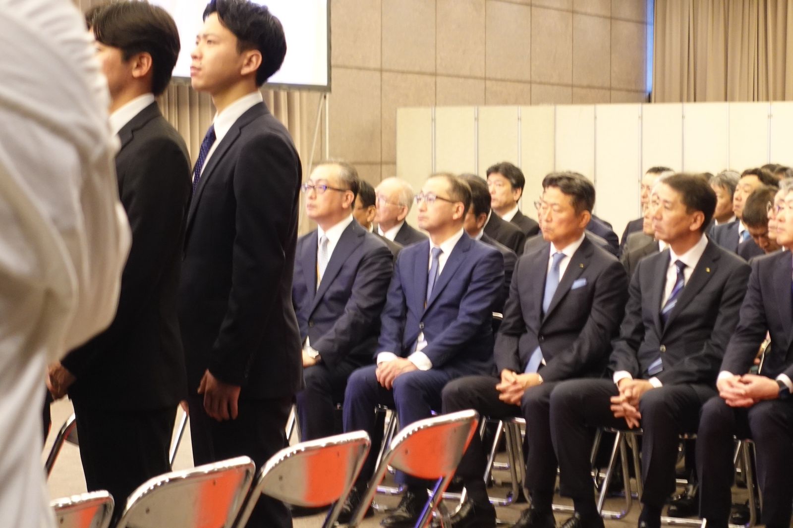 入社セレモニーには、新入社員のほか、岡藤会長の前任の社長・会長を務めた小林栄三・現名誉理事や伊藤忠の創業家、社外取締役も含めた全役員ら660人が参加。新入社員の両親や親族に向けてユーチューブでも配信した。テレビ・新聞など17社のメディアが取材した。