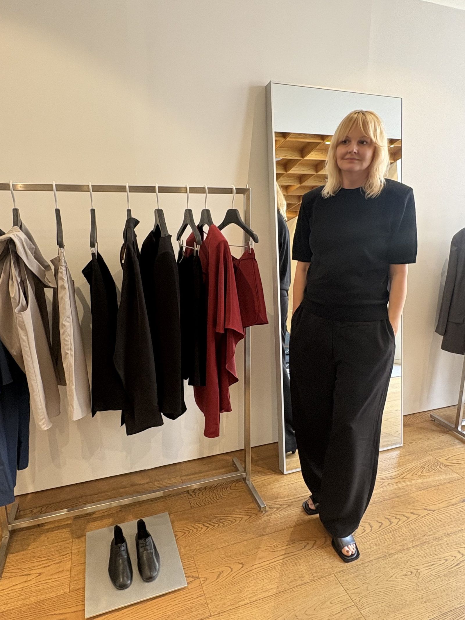 カリン:全体として感じているのは、人々の装い方が大きく変化しているという点です。10年前までは昼と夜のスタイルがより明確に区別されており、職場ではよりフォーマルな装いが求められていました。しかし、コロナ以降は「快適さ」や「肩の力を抜いたエレガンス」といった価値観が広がり、それ自体が一つのトレンドとなりました。こうした流れの中で、快適なシルエットやリラックスした感覚を保ちながらも、エレガンスを備えたスタイルが受け入れられるようになっています。今後はスポーツウエアの要素が引き続きレディ・トゥ・ウエアに影響を与える一方で、このようなリラックスしたシルエットと、再び台頭するスリムなシルエットとのコントラストが、より一層際立っていくのではないかと考えています。