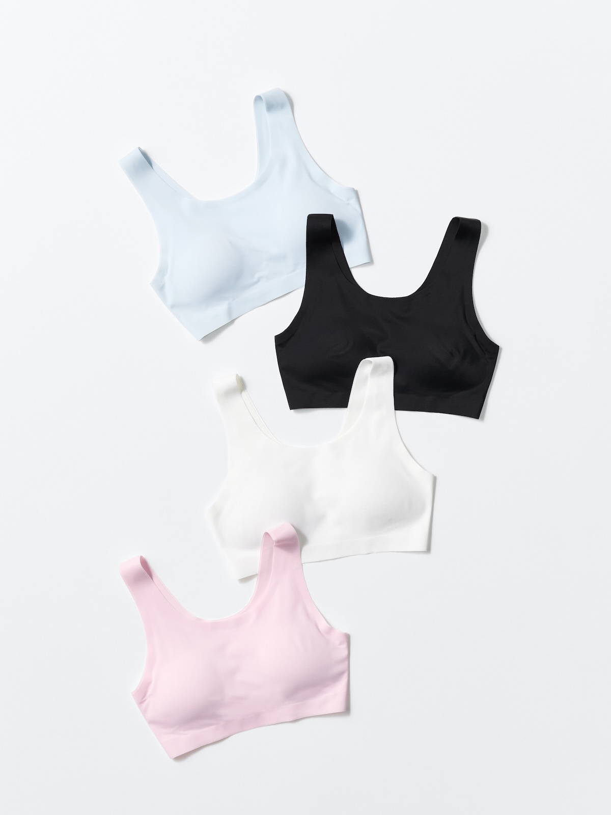ユニクロには、似たようなデザインに大人用の“ワイヤレスブラ/ウルトラリラックス”があり、“エアリズムファーストブラ”の160は“ワイヤレスブラ/ウルトラリラックス”のSとカバーするサイズは近い。ただ、成長期のバストはデリケートで変化しやすいため、それに合いやすいカップ形状などを追求しており、大人用ブラとはつくりも機能性も異なる。