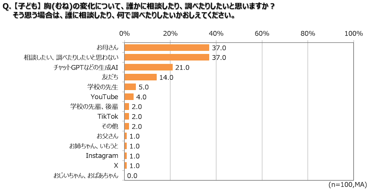 その中で興味深かったのは、子どもが胸の変化を感じた際の相談相手についてのアンケートだ。