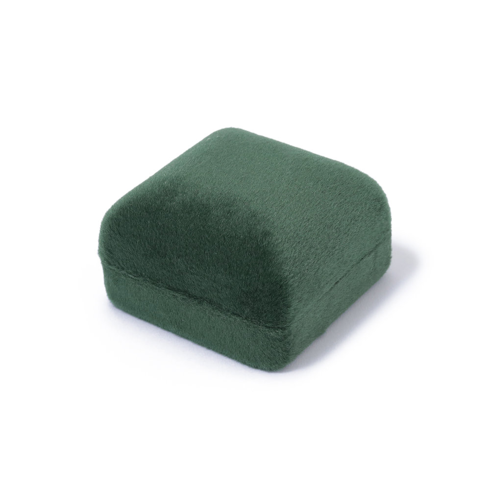 付属するリングケースにはベロア素材を採用。リング本体のカラーに合わせた濃緑の色合いで仕上げ、特別感を高めた。蓋を開けた際に現れるミニマルなリングとのコントラストも魅力の1つとなっている。