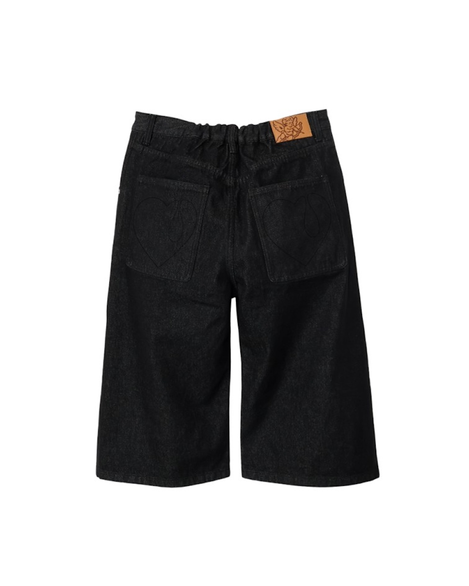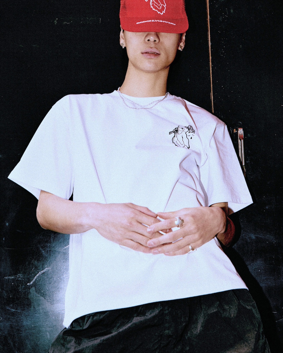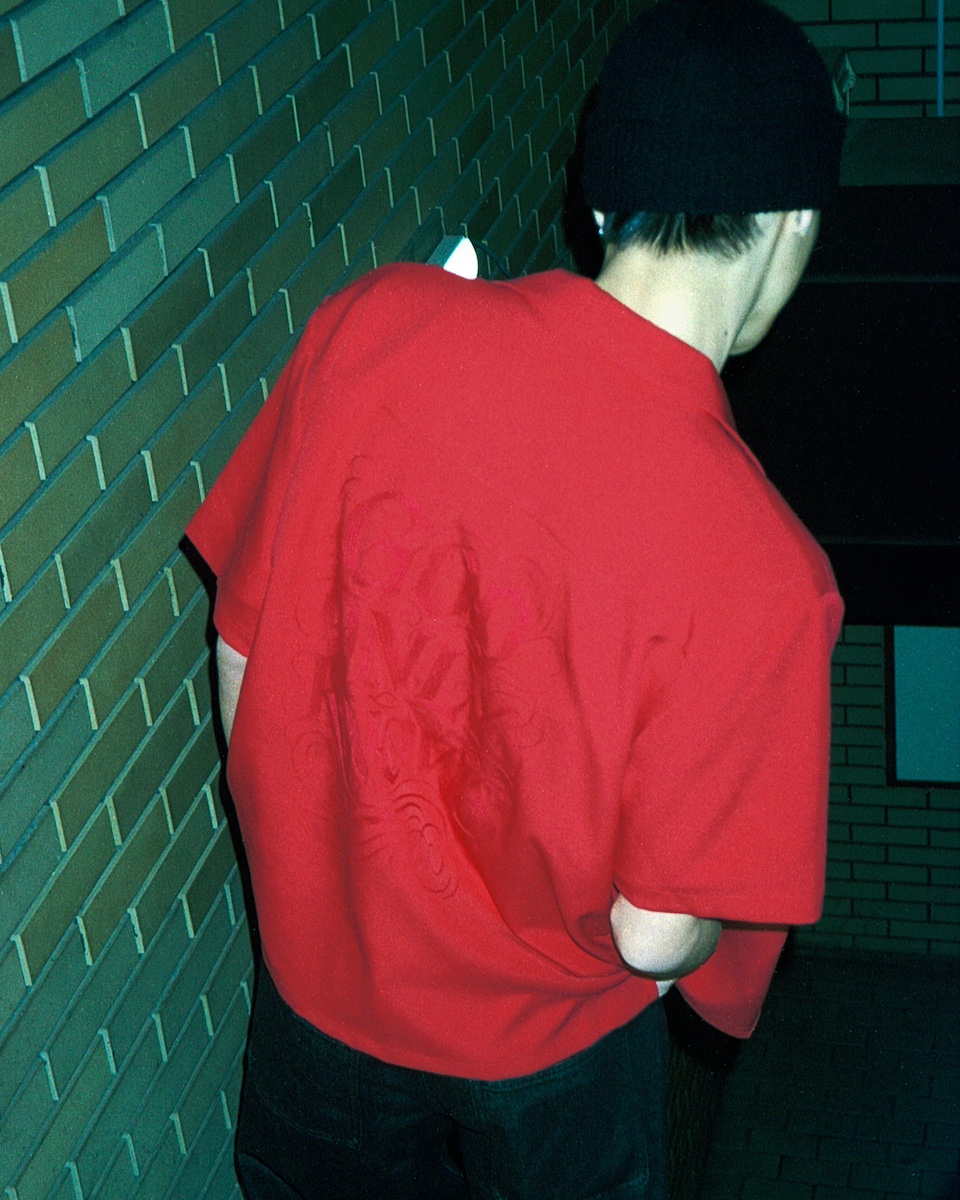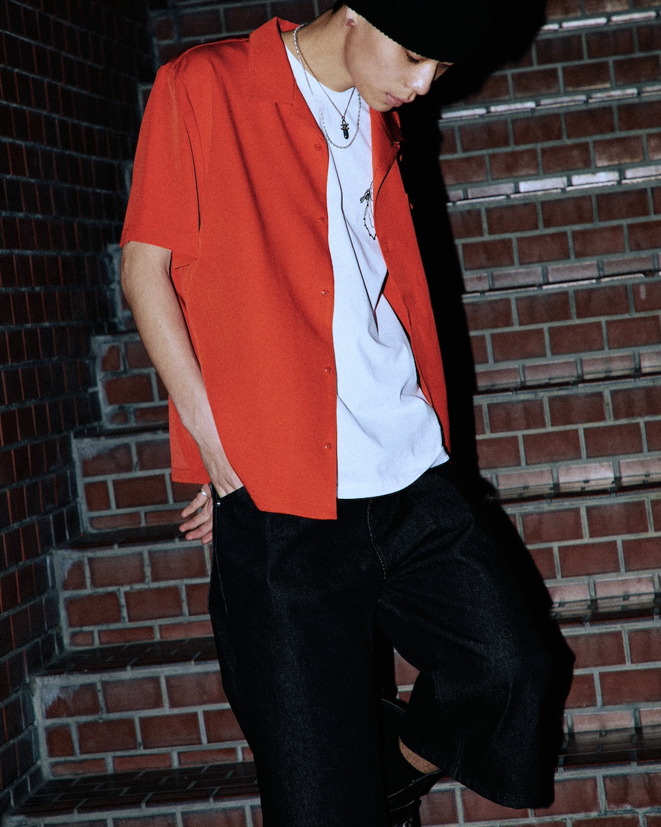 アイテムには、ブランドのアイコンである“グリム=死神”のグラフィックやオーナメンタルなフォントをストリート仕様に再構築した新ロゴを採用。中でもオープンカラーシャツは、ミニマルなフロントに対し、背面に立体刺しゅうでロゴを大胆に配したデザインが特徴。ブランド初となるクロップド丈のデニムショーツは、絶妙なシルエットとバランスの取れたレングスでトレンド感を演出し、バックポケットのティアハートステッチがアクセントになっている。
