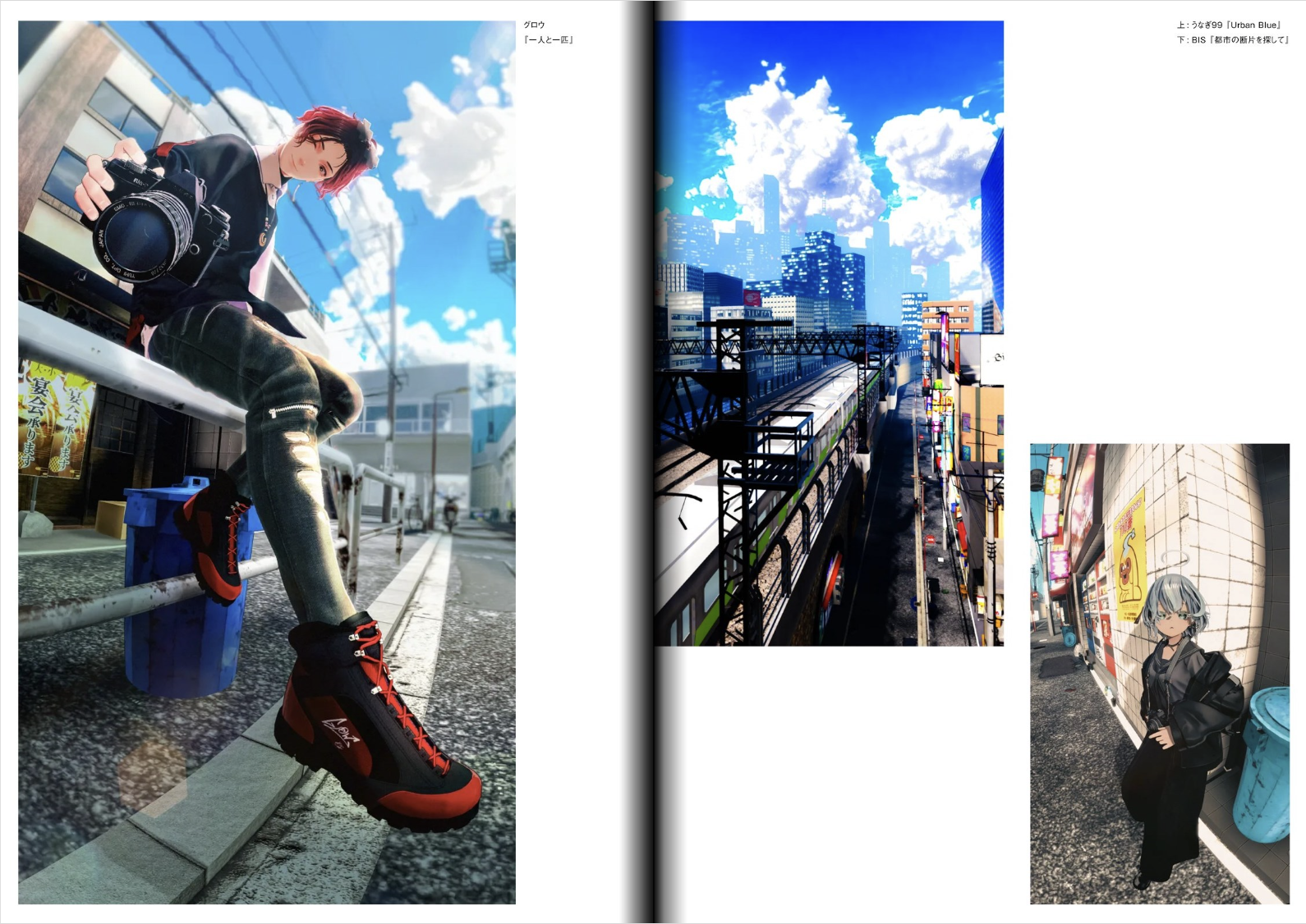オンラインサービスを活用し、一冊約4900円で制作。紙質やサイズにもこだわり、雑誌らしい光沢と厚みを選んだという。ビームス周りのバーチャルファッション勢と富士フイルム周りのバーチャルフォトグラファー勢の粋が詰まった一冊が完成した。「手にしたとき、『街と被写体がそこに実在している』と感じられたことが何よりうれしかった。ゴーグル越しではなく、紙面で見ることで実在感が増した」。
