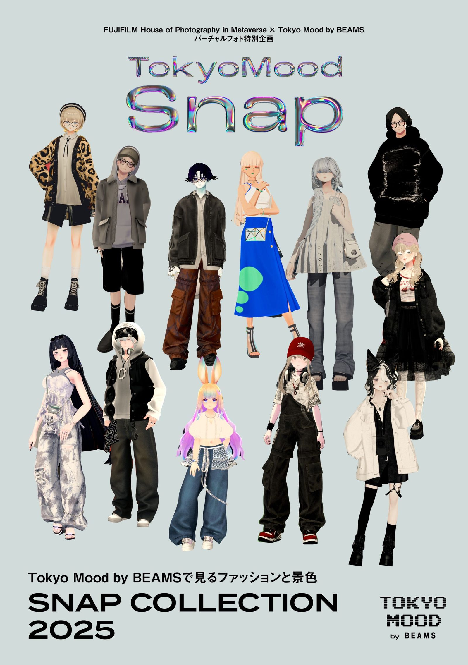 ビームスはVRコミュニケーションプラットホームVRChatに開設した自社ワールド「トーキョームード by ビームス(以下、(以下、トーキョームード)」を舞台に撮影されたVRフォトをまとめ、ZINE(ジン)「トーキョームード スナップ(TOKYO MOOD SNAP)」を制作した。初回として約50部を印刷し、関係者に配布。バーチャル空間で高感度なファッションを楽しむ人々の姿を、ビームスらしさを感じさせる原宿的空間でとらえた写真群は、一見2DのCGだが、実際は奥行きのある3D空間。カメラマンのアバターがロケーションを選び、被写体(アバター)とリアルタイムにコミュニケーションをとりながら撮影している。バーチャルファッションの“今”をとらえており、アバター文化の機微に富む。制作の経緯やビームスがやる意義について聞いた。