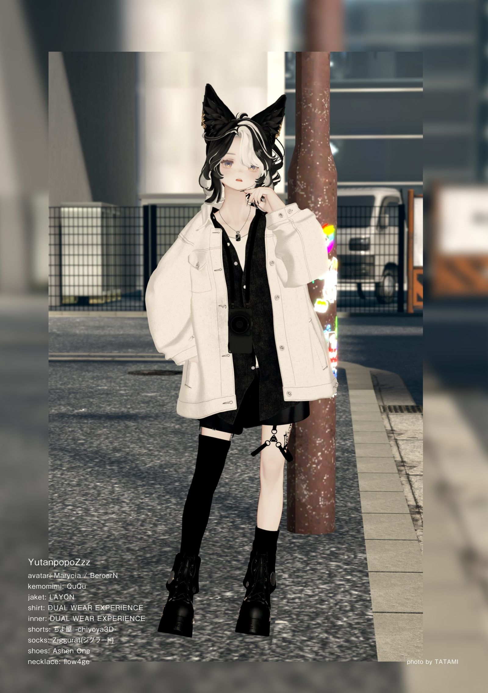 制作したZINEは全40ページ。同ワールドで撮影されたファッションスナップ29点と、同ワールド自体を舞台に撮影されたVRフォト12作品で構成されている。「24年に『トーキョームード スナップ』という動画シリーズを始めた。一度は中断したが、富士フイルムと縁があり、『こういうZINEを作りたい』という話から、今回の企画へとつながった」と経緯を語る。