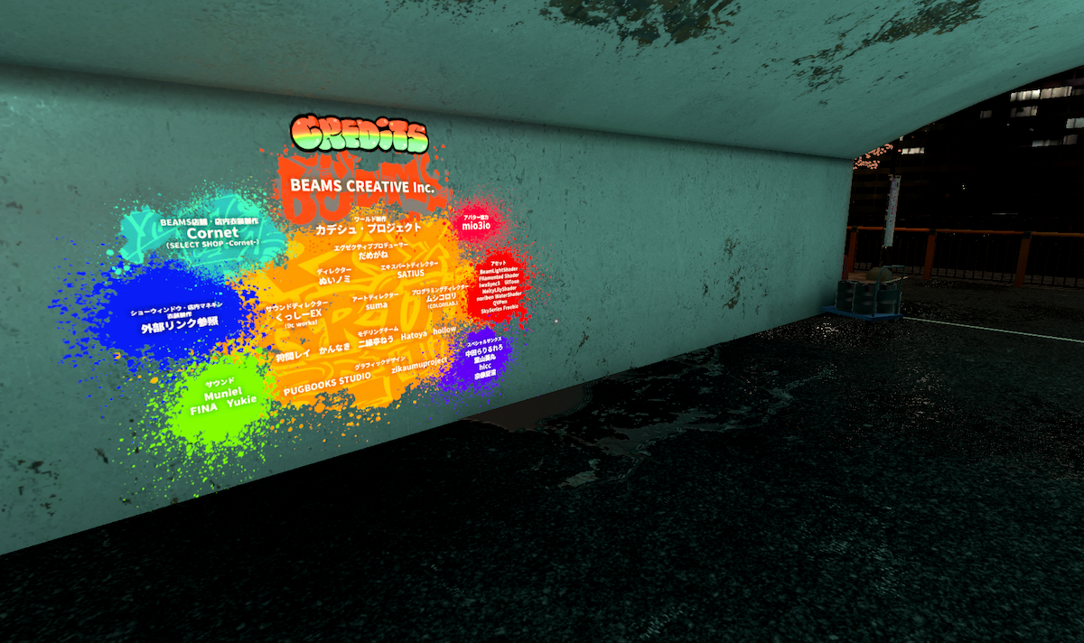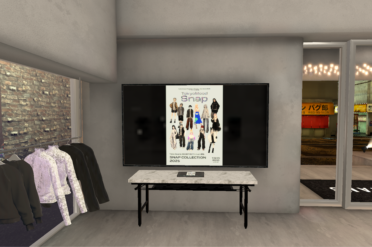 「バーチャルマーケット」出展の際には、販売スタッフがバーチャルショップ内でリアルタイム接客を行うなど、積極的にメタバース事業に取り組んできたビームスだが、24年にはオリジナルワールドを開設。それが「トーキョームード」だ。VR映画スタジオのカデシュ・プロジェクトと協業し、新橋や裏原宿を思わせるワールドを実現。ビームスのショップはもちろん、居酒屋や飲食店、ゲームセンターやコンビニ、ミュージックホールなどが軒を連ねる路地や河川沿い、高架下の空間など、東京の猥雑さを音やさまざまなギミックと共に再現した。
