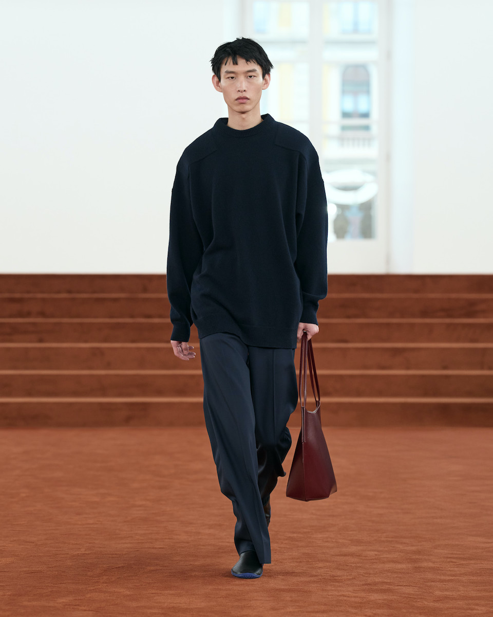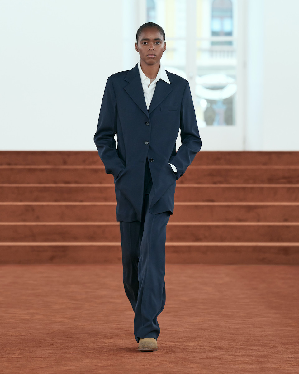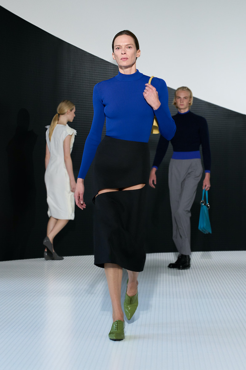 ベロッティ:ミニマリズムの定義は、簡単じゃない。時に「シンプル」と混同されがちだが、私のクリエイションはシンプル、つまり単純なものでは全くない。「今は、どんな時代だろうか?」「そこで生きる人たちは、どんな働き方をしているだろうか?」「そんな人たちは、洋服に何を求めるだろうか?」「それを『ジル サンダー』らしく表現したら、どうなるだろうか?」「一方で、新しさも加えられているだろうか?」ーー。脳内では常に自身に問いかけ続け、アイデアを探し、ストーリーを紡いでいる。もちろん、時にはミスもある。そんな過程は、シンプルとはむしろ正反対だ。