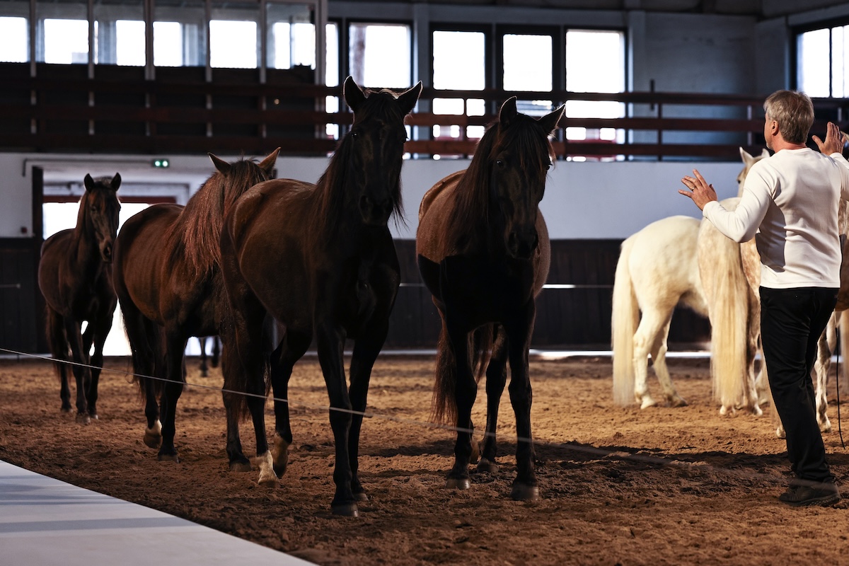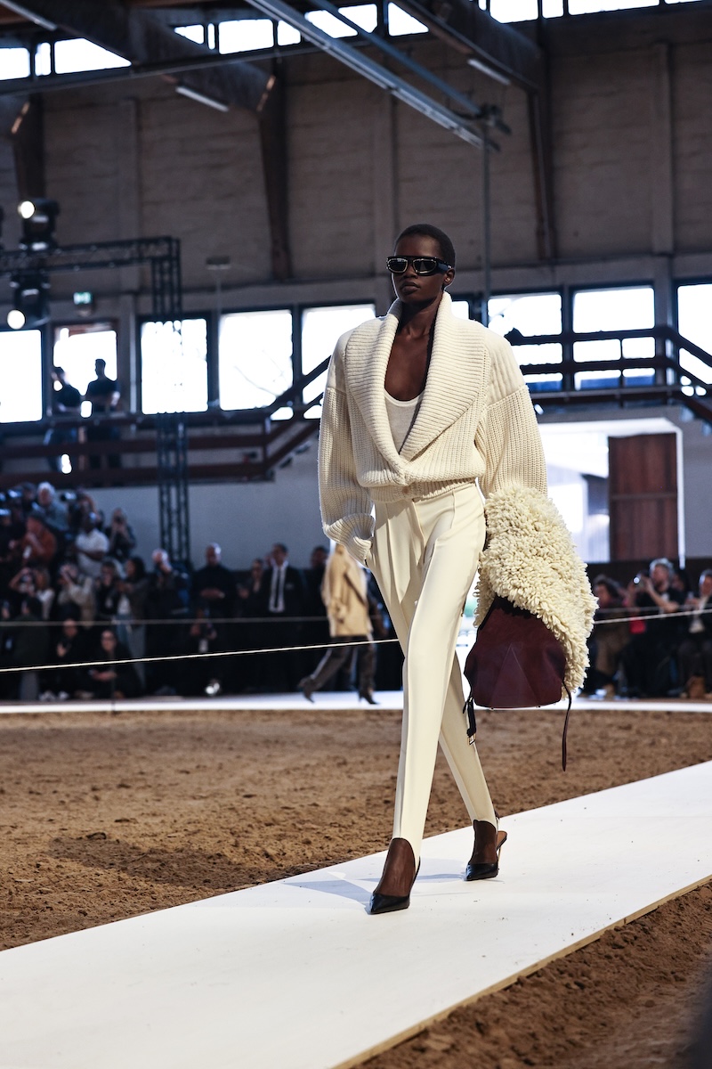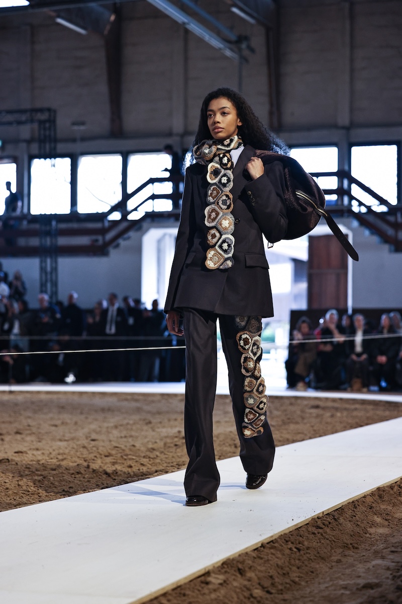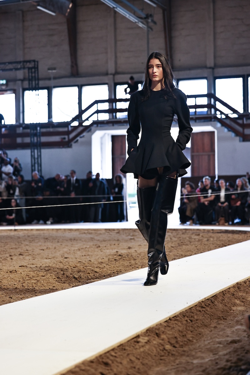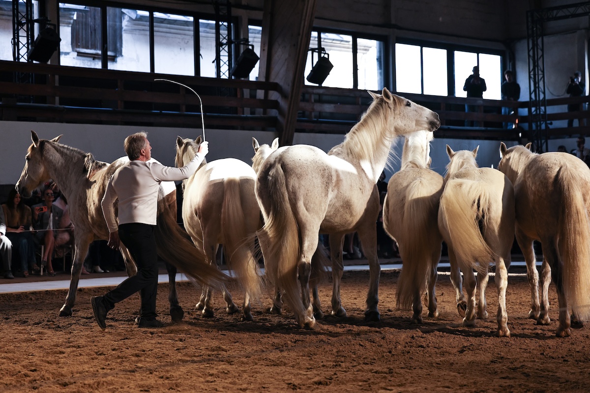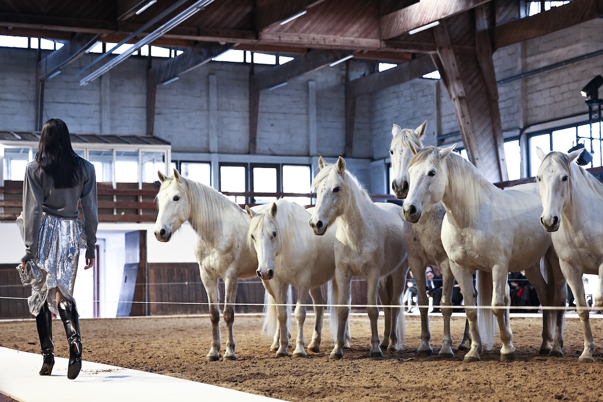 「ステラ マッカートニー」は、2001年の設立から今年で25周年。そんな節目ということもあってか、自身の幼少期からさまざまなマイルストーン、そして現在にいたるまでの人生をたどるようなコレクションに取り組みました。ショーの会場となったのは、ブローニュの森の中にある歴史ある乗馬アリーナ。今年が午年であることにもちなみ、23-24年秋冬ショーでもタッグを組んだ馬術家ジャン・フランソワ・ピニョン(Jean-Francois Pignon)と13頭の馬によるパフォーマンスの中でショーを行いました。