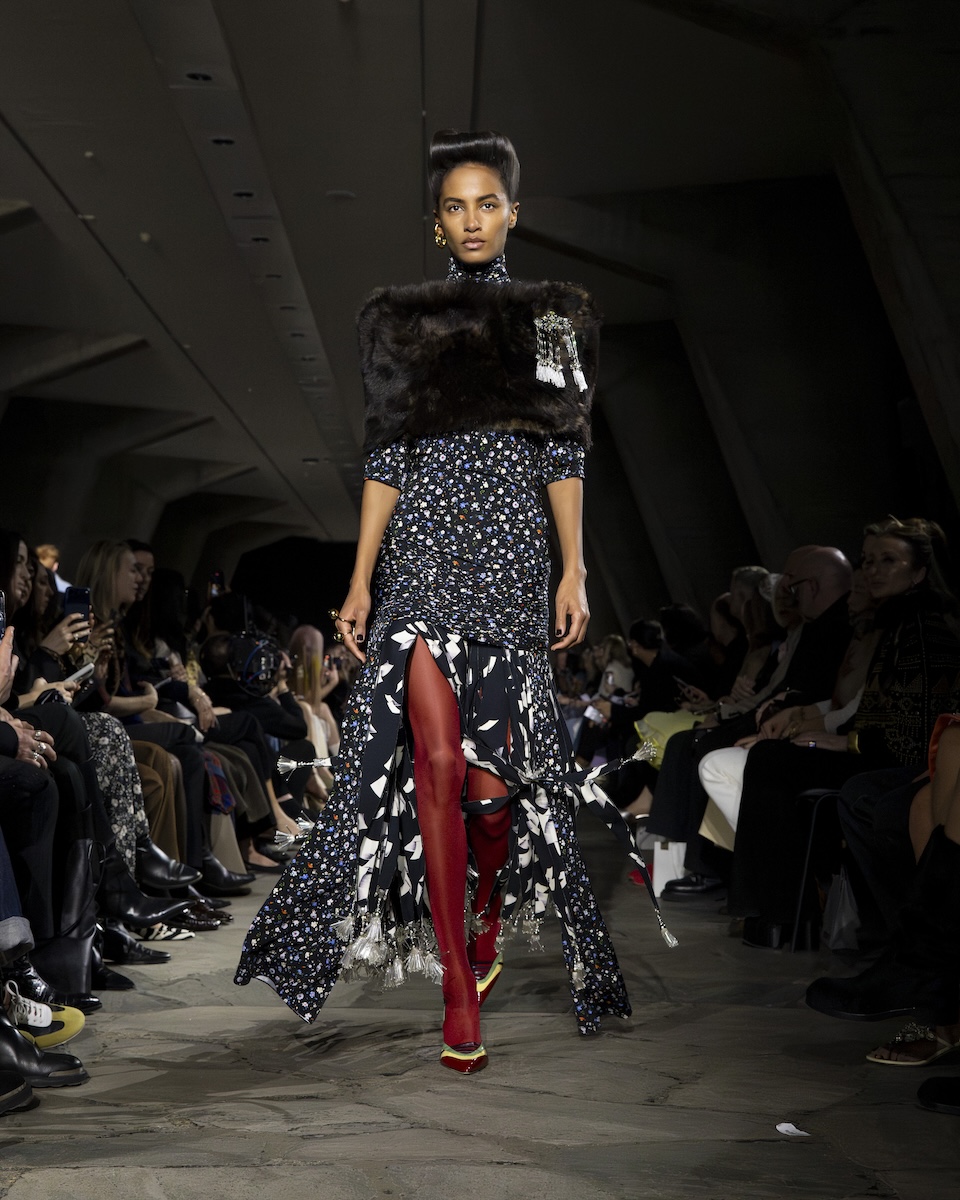 動物を愛し、共に生きることを大切にしているステラはブランド設立以来、レザーやフェザー、ファーなどを一切使わないクリエイションで知られ、年々オーガニックやリサイクル・再生繊維など環境に配慮した素材の割合も高めています。今季の提案は、その割合が93%になったそう。きっとモノ作りにはいろんな制約もあると思われますが、そんなことを全く感じさせない豊かな素材感がランウエイを彩りました。