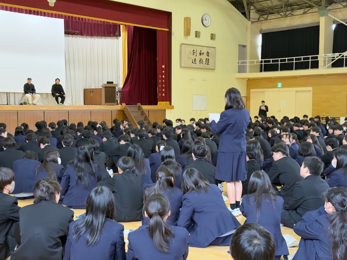 講演では、それぞれの事業について分かりやすく説明。質疑応答では、生徒から具体的な質問が相次いだ。
