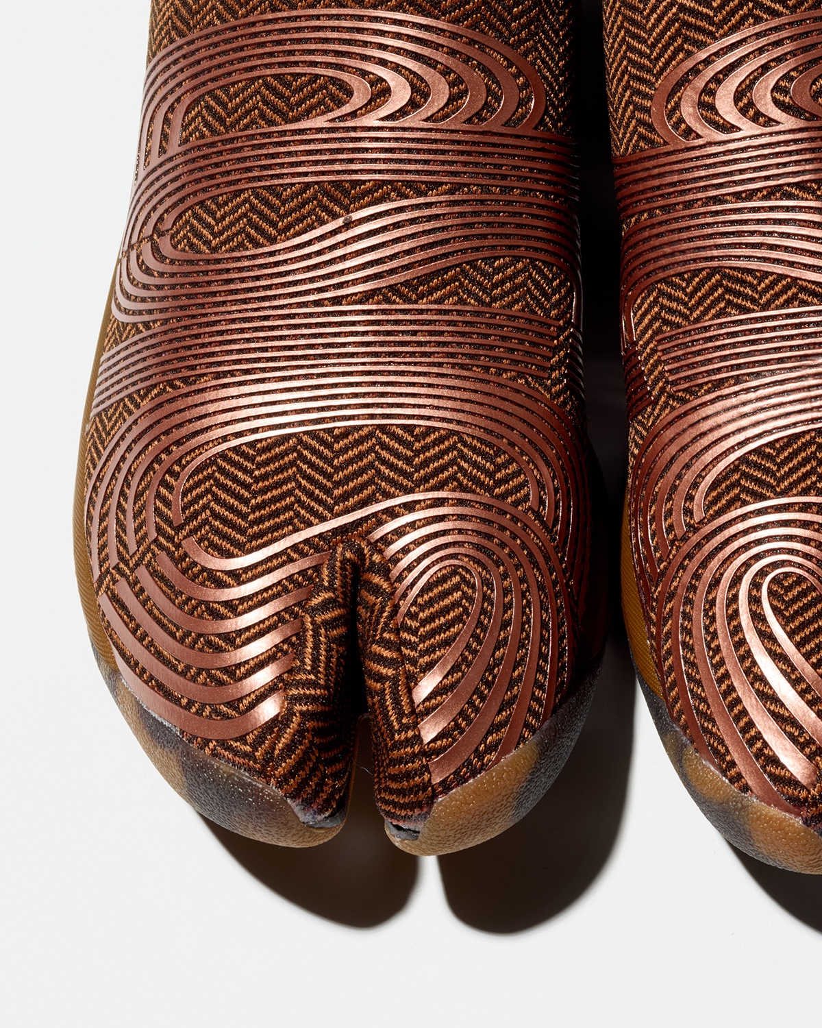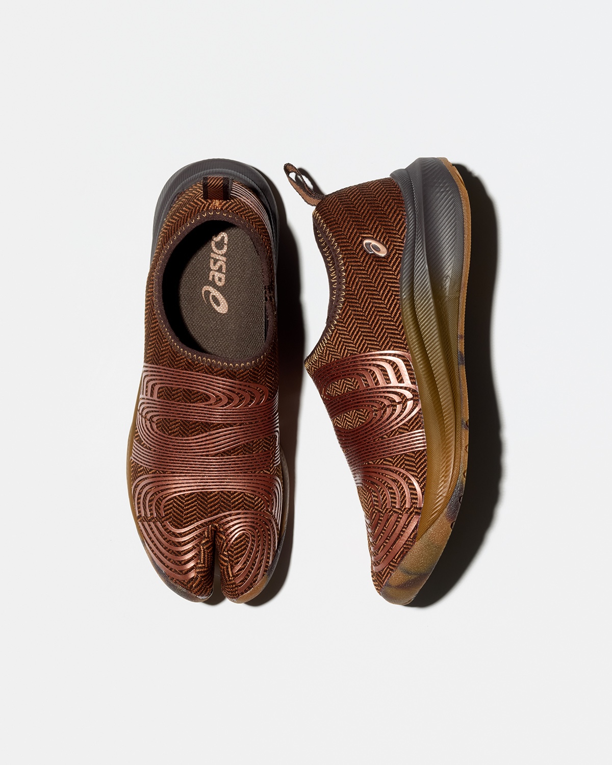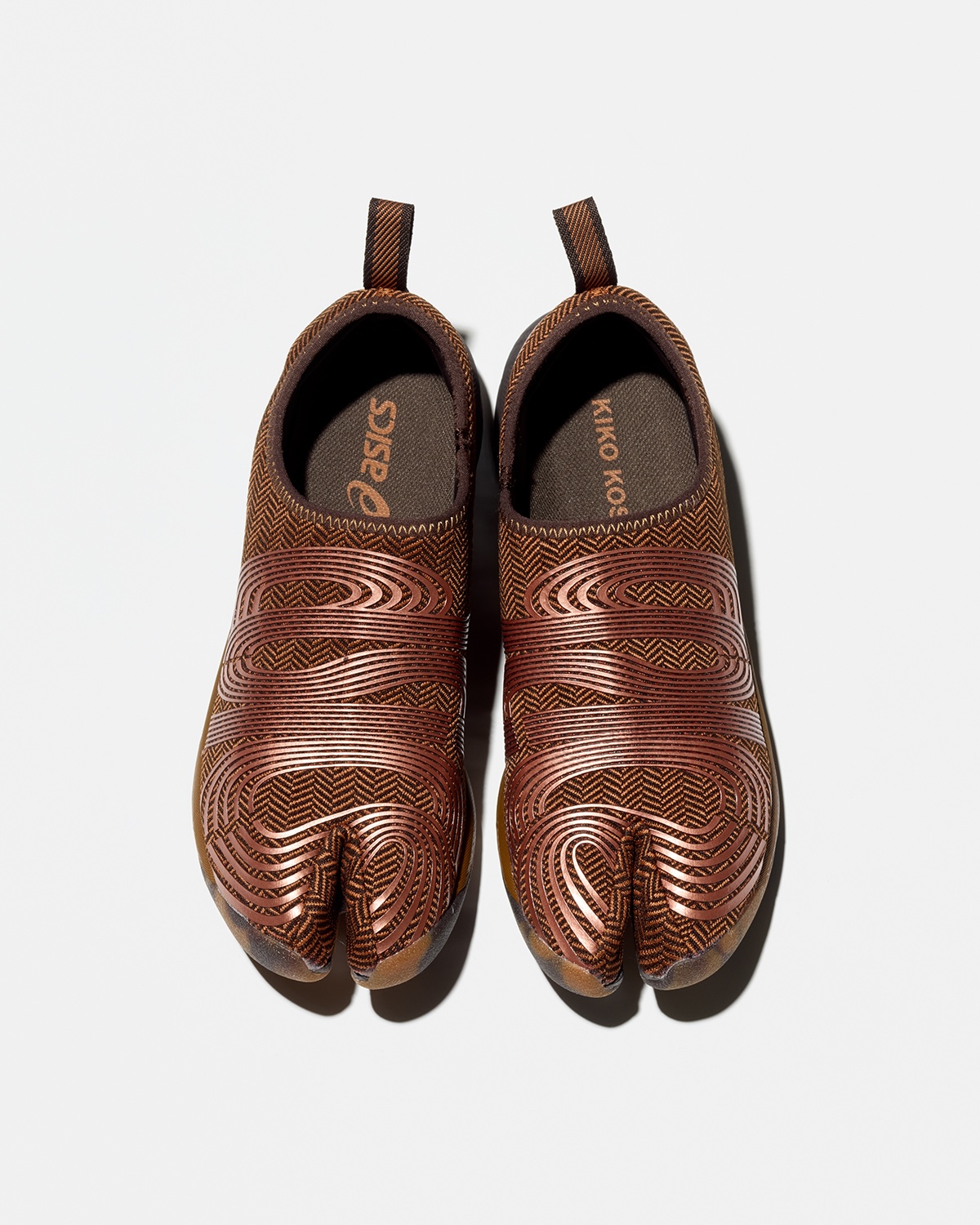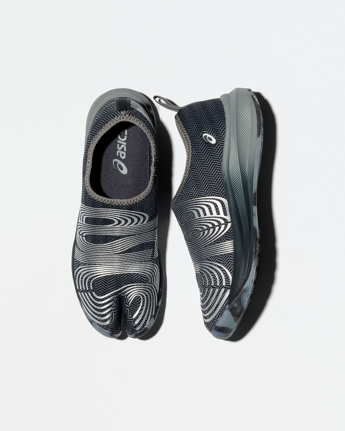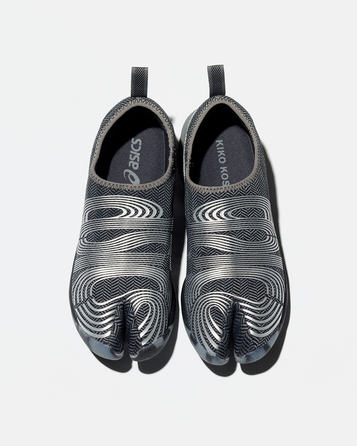 “KIKO KOSTADINOV × ASICS LYASA FF”は、アシックスのアーカイブモデルを着想源に、2008年に宇宙飛行士のトレーニング用として使用されていたタビシューズを参照して制作。特徴的なスプリットトゥ構造を踏襲しつつ、独自のパターンによる厚みのあるソールとボリューム感のあるデザインへアップデートした。ミッドソールには“FF ブラスト プラス”フォームを採用し、クッション性と高い反発性を両立。アッパーには滑らかなメッシュ素材を用いている。