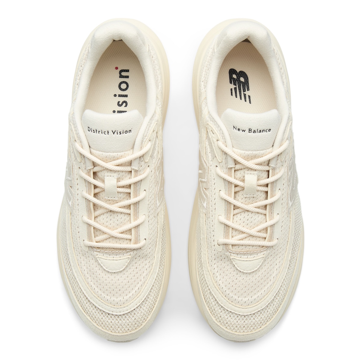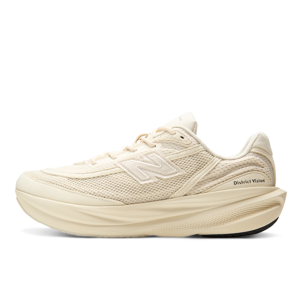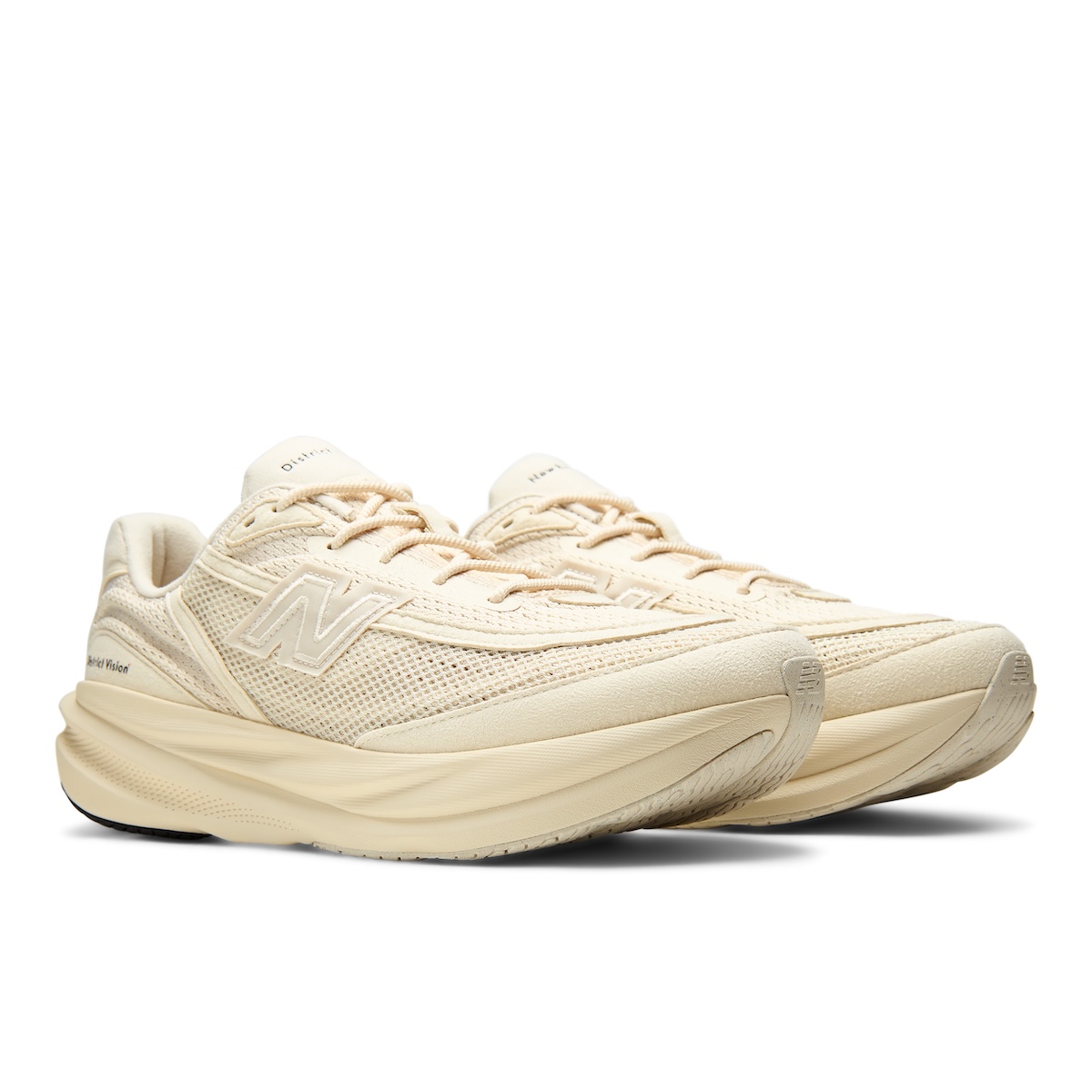 本作は、オリジナルの“ニューバランス RC1”に着想を得て、「ディストリクト ヴィジョン」がアーカイブ的視点から“1080”を再解釈した。テクスチャーとプロテクション性を高めるアッパーを採用している。カラーパレットは、ミニマリズムを軸に据えた2色のモノクロームなアーストーンで展開する。1990年代のランニングシューズに着想を得たマテリアル使いが特徴で、アッパーにはメッシュヴェールを重ねた構造を採用している。トゥボックスやフォクシングのオーバーレイには“クラリーノ スエード”を使用し、サイドには織り込み仕様の“N”ロゴを配置した。