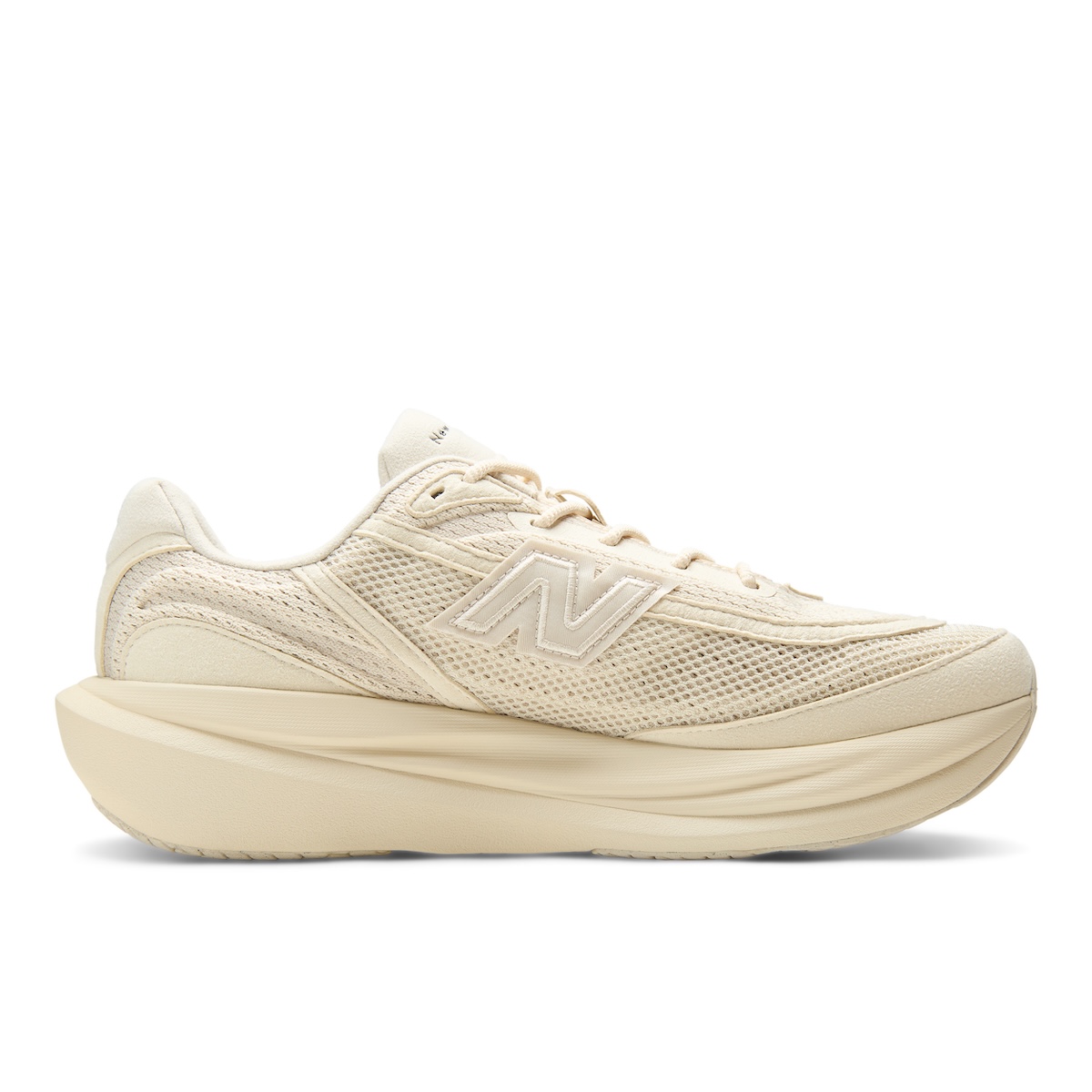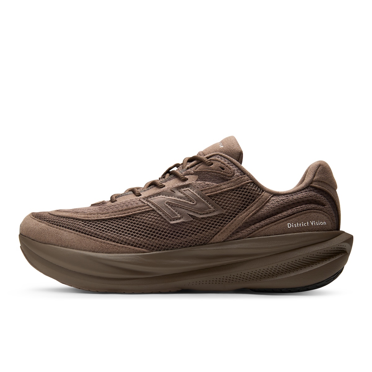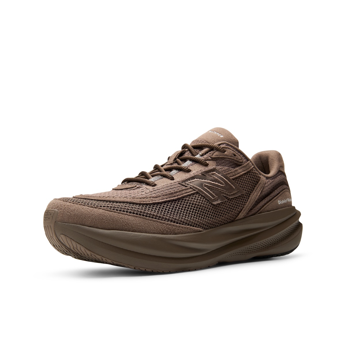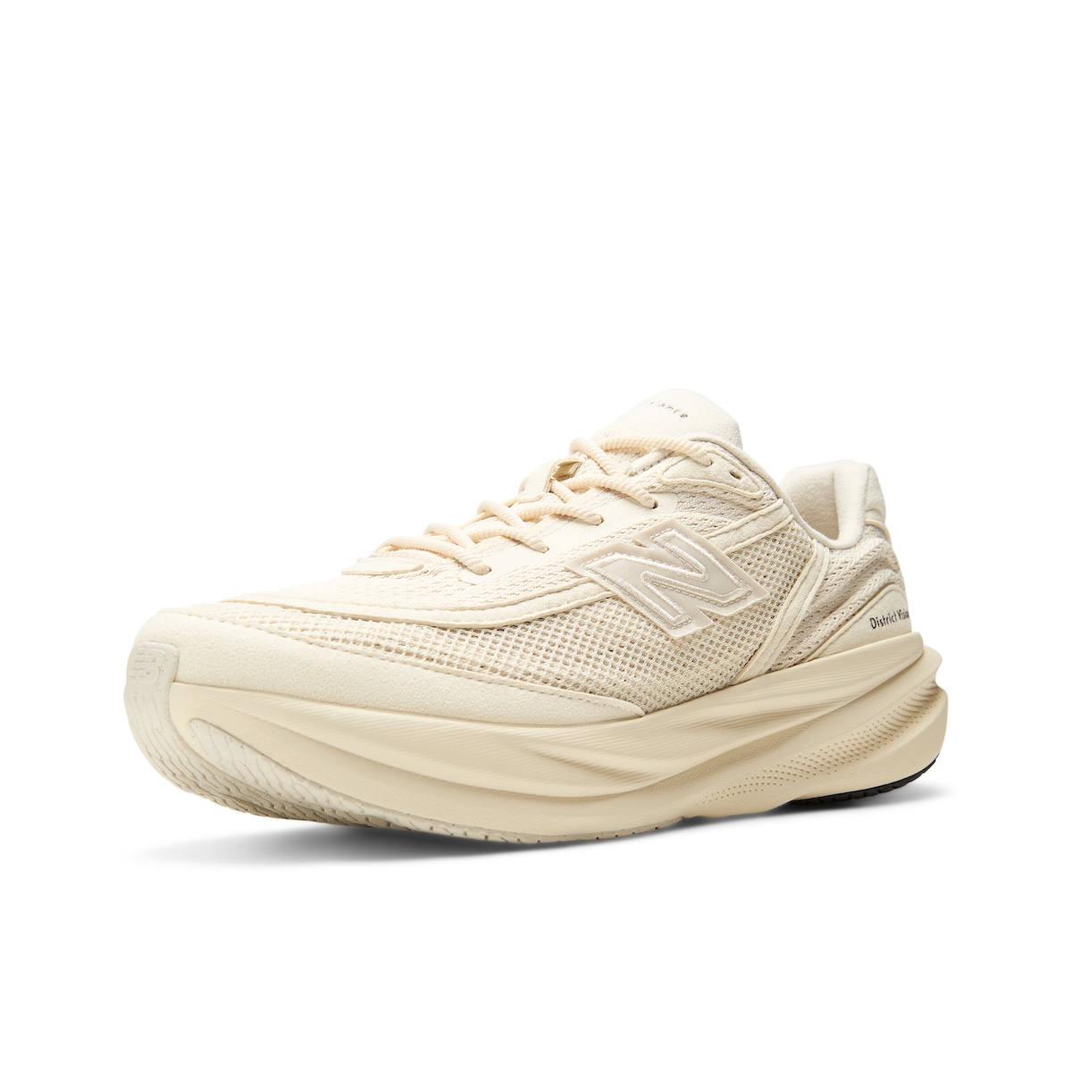 本作は、オリジナルの“ニューバランス RC1”に着想を得て、「ディストリクト ヴィジョン」がアーカイブ的視点から“1080”を再解釈した。テクスチャーとプロテクション性を高めるアッパーを採用している。カラーパレットは、ミニマリズムを軸に据えた2色のモノクロームなアーストーンで展開する。1990年代のランニングシューズに着想を得たマテリアル使いが特徴で、アッパーにはメッシュヴェールを重ねた構造を採用している。トゥボックスやフォクシングのオーバーレイには“クラリーノ スエード”を使用し、サイドには織り込み仕様の“N”ロゴを配置した。