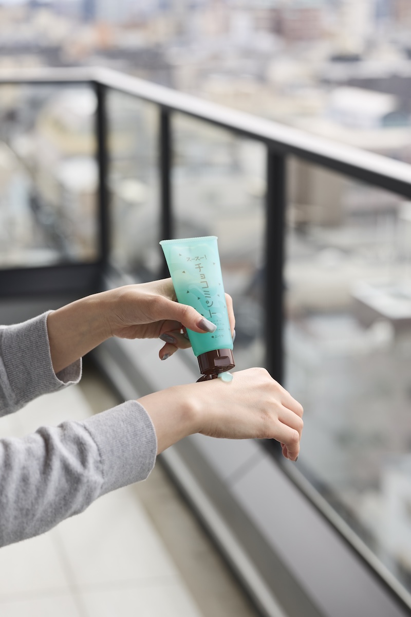 “スースー!チョコミント ウオーターハンドクリーム”は、ビタミンC誘導体など夏のダメージを受けた肌にピッタリの美容成分や、さっぱりとした使用感をかなえるメントールを配合したほか、パフェをイメージした成分としてセイヨウハッカ葉エキスとカカオ種子エキスを配合。爽やかなミントの中にほんのり甘いチョコの香りを取り入れた。みずみずしいウオーターベースのテクスチャーで、さらっとした使い心地をかなえる。