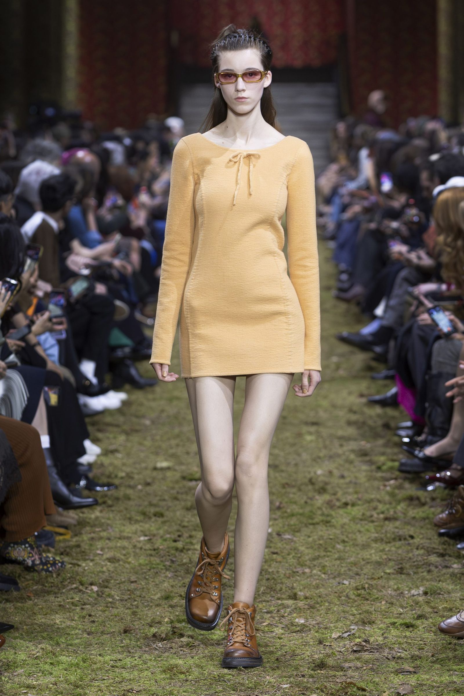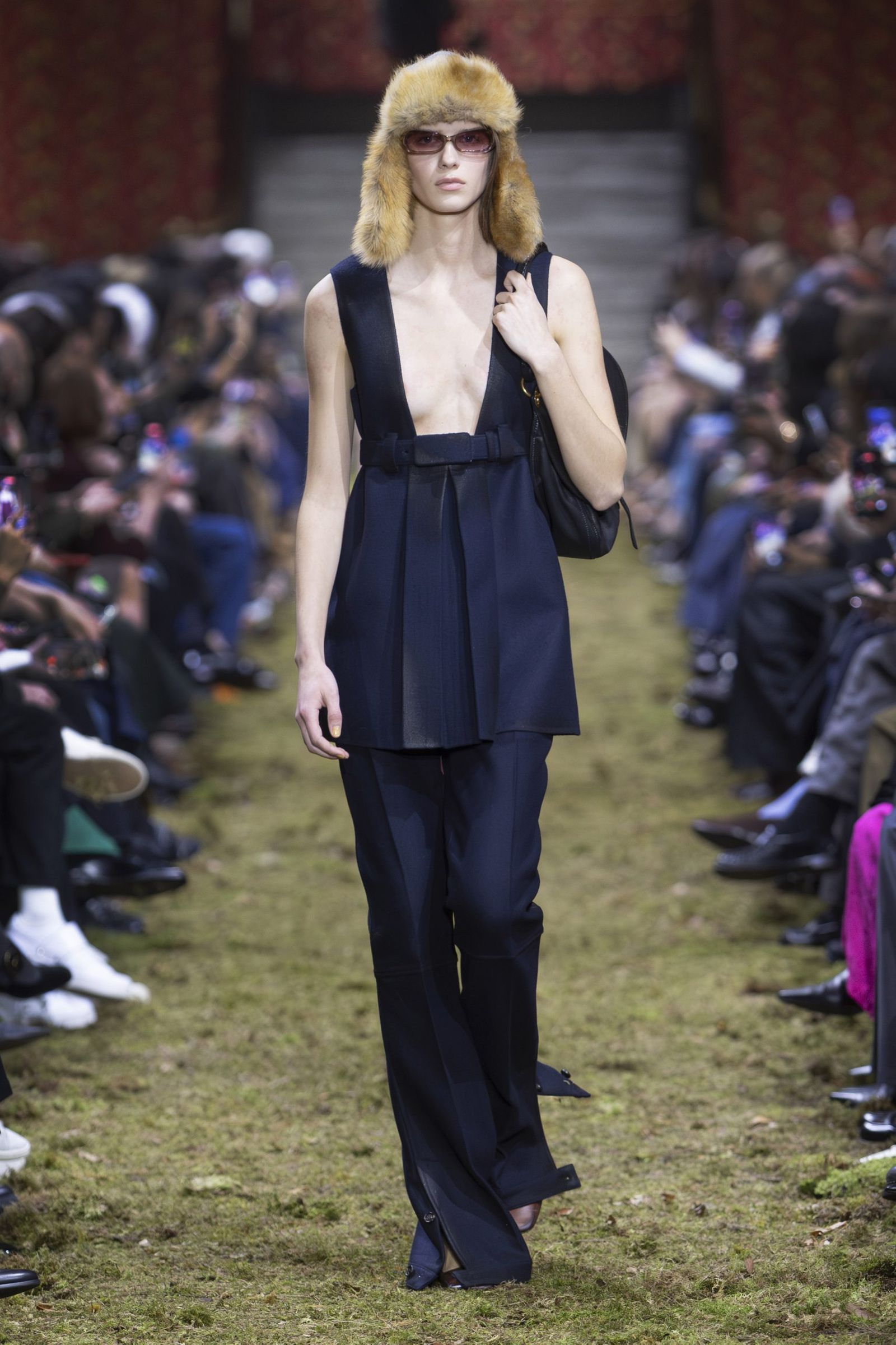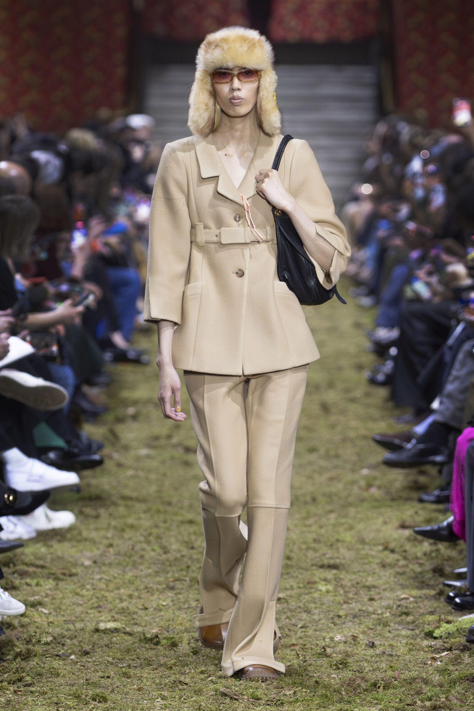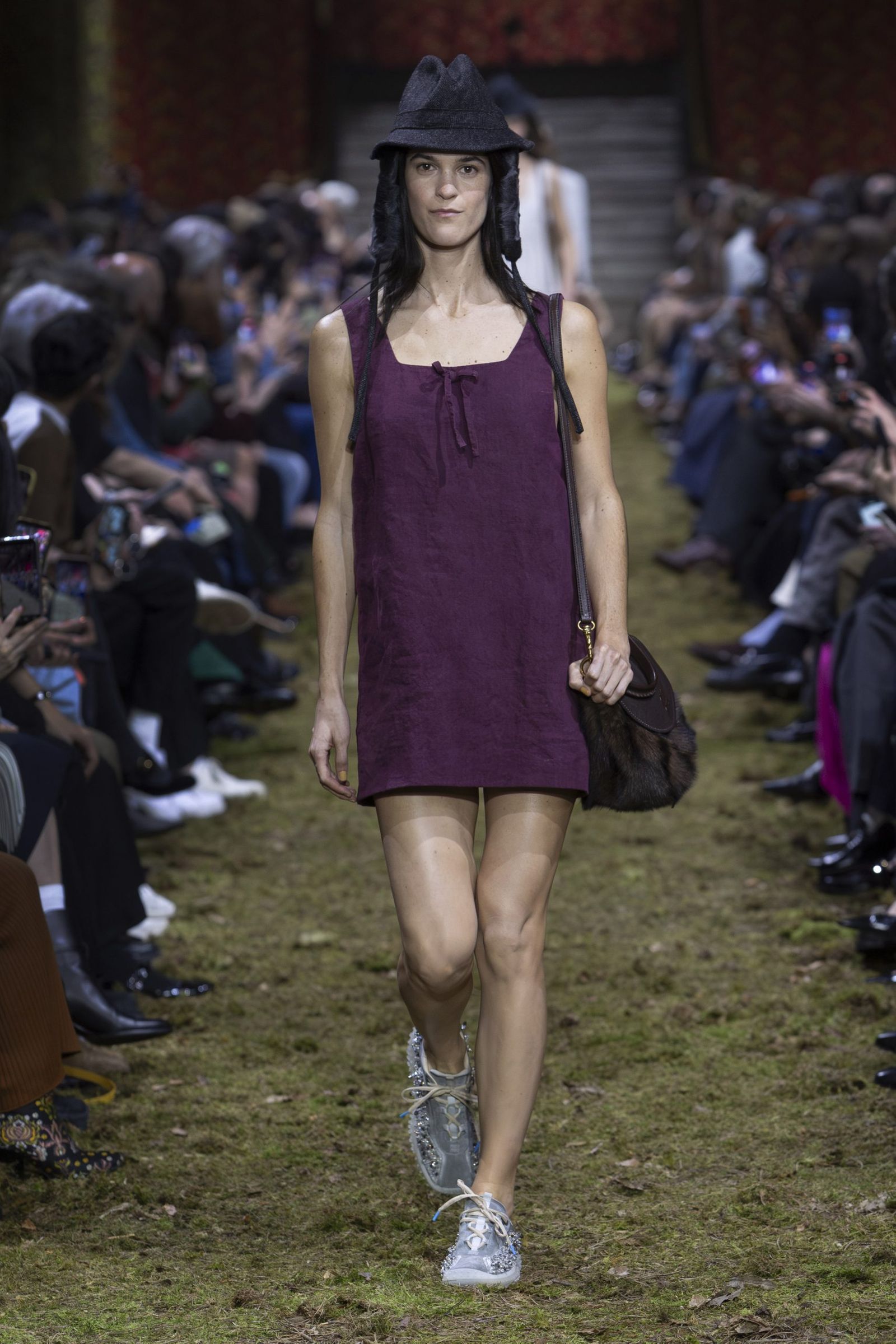 また、毎回「ミュウミュウ」のショーはキャスティングもユニークですが、今季も多様な顔ぶれが目を引きました。イエナ宮の格式ある空間に土や草、小枝を敷き “野生の森”を再現したランウエイに登場したのは、ジリアン・アンダーソン(Gillian Anderson)やクロエ・セヴィニー(Chloe Sevigny)、ジェマ・ワード(Gemma Ward)から、映画監督リュック・ベッソン(Luc Besson)の娘サティーン・ベッソン(Sateen Besson)、クンバ・サンバ(Coumba Samba)、ドンキー・キッド(Donkey Kid)、トゥモロー・バイ・トゥギャザー(TOMORROW X TOGETHER)のチェ・ヨンジュン(Choi Yeonjun)まで、幅広い年齢の俳優やアーティスト、ミュージシャン、モデルたち。今季のミニマルなスタイルは、それぞれの内面から滲み出す個性やエネルギーを際立たせました。