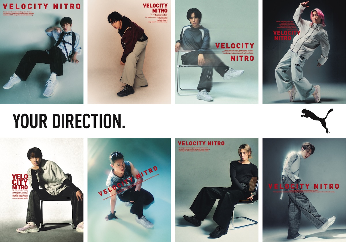 「プーマ(PUMA)」は4月15日、Snow Manを起用した新キャンペーン“ユア・ディレクション(YOUR DIRECTON)”を開始する。本キャンペーンでは、Snow Manがランニングスタイルシューズ“ベロシティ ニトロ 4(VELOCITY NITRO 4)”(1万7600円)と“ダーター プロ 2(DARTER PRO 2)”(9900円)を着用して登場し、キャンペーンビジュアル、ムービーを新商品取り扱い店舗および特設サイトで公開する。