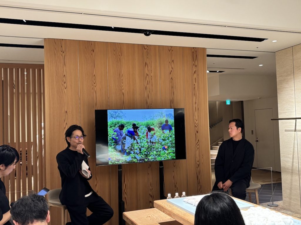 「シーエフシーエル(CFCL)」は、東京・銀座の和光 本店地階1階アーツアンドカルチャーで特別催事「CFCL: from Cotton Fields to Dress」を4月15日まで開催中だ。同展では、オーガニック移行期のコットン「コットン・イン・コンバージョン」を用いた商品を中心に紹介。会期初日には、高橋悠介「CFCL」代表兼クリエイティブ・ディレクターと、同素材の普及を推進するスタイレム瀧定大阪の髙森俊滋ORGANIC FIELD室室長によるトークショーを行った。