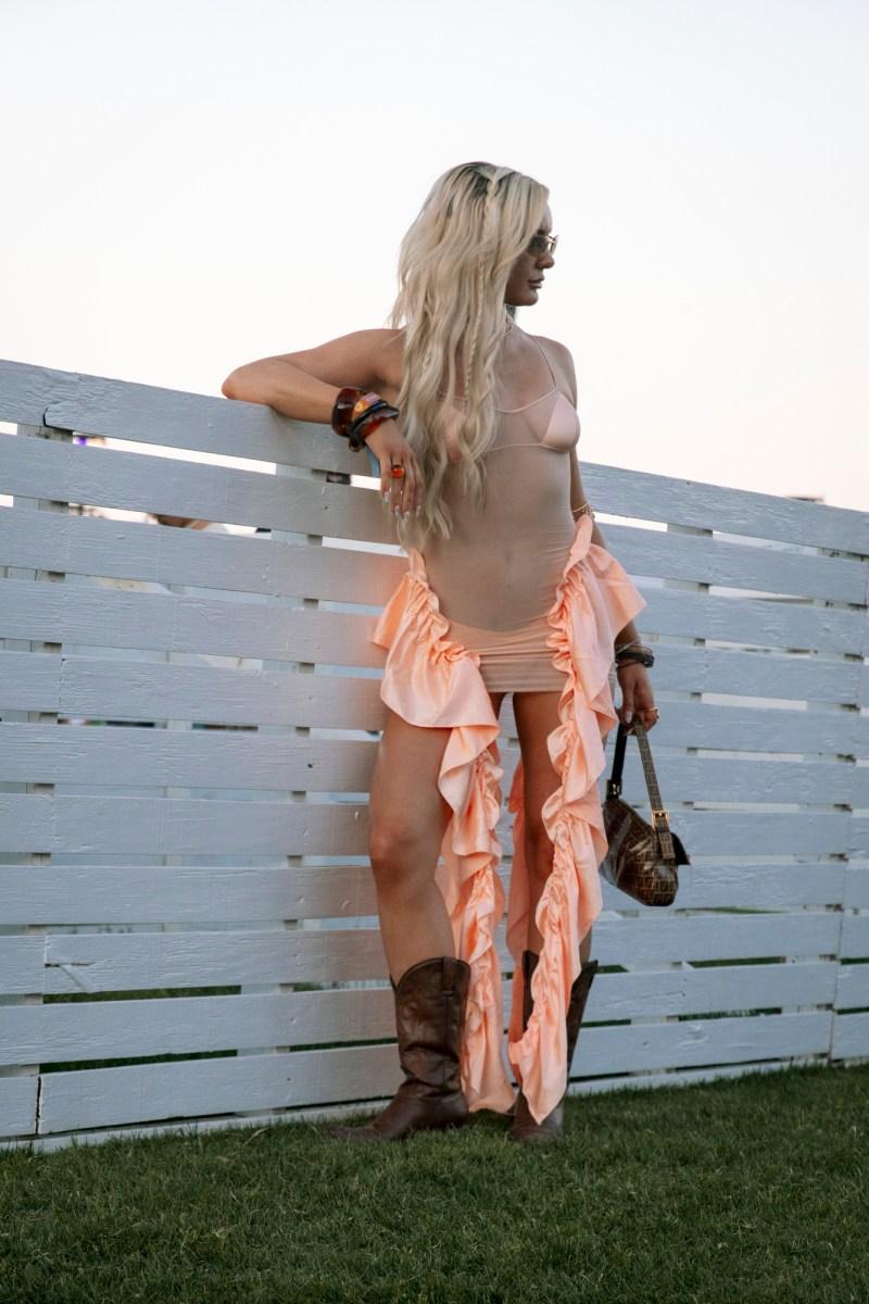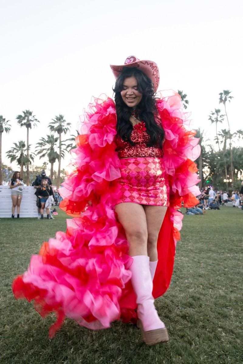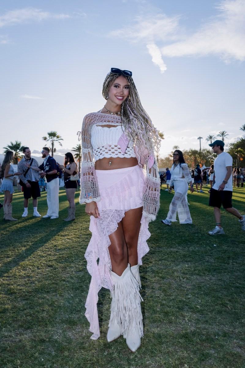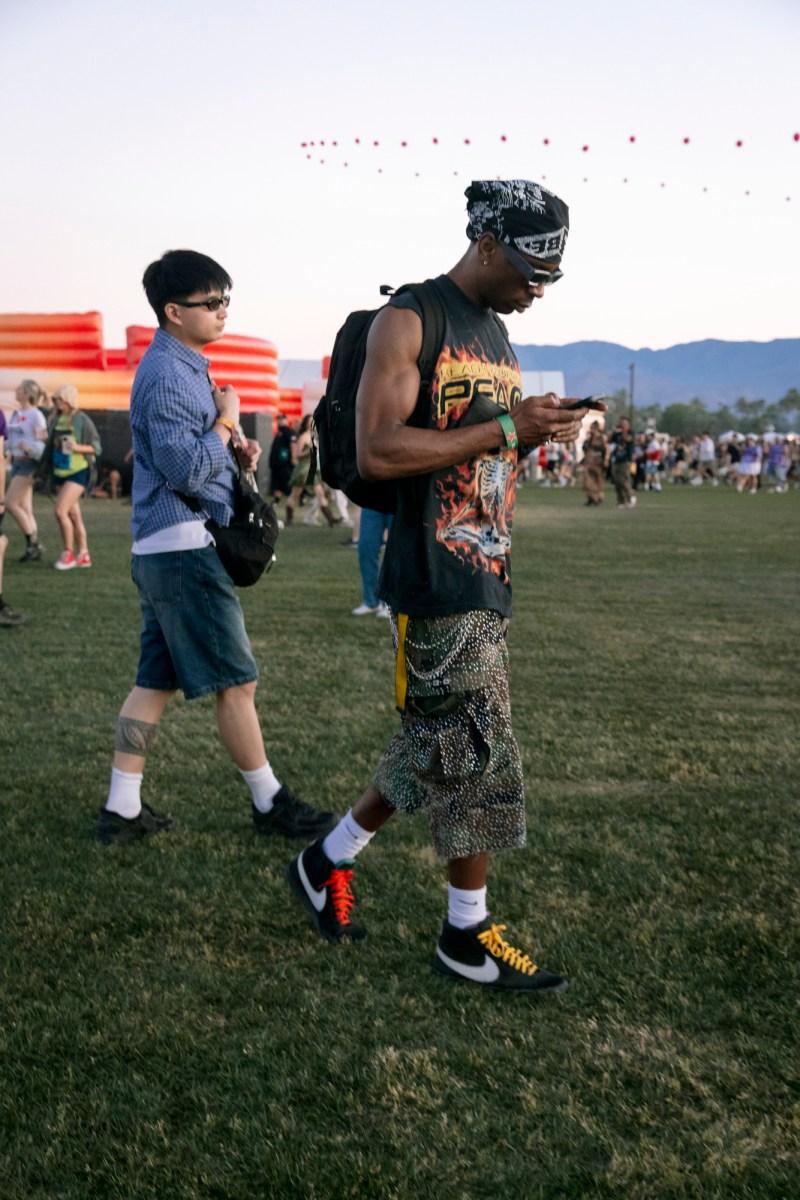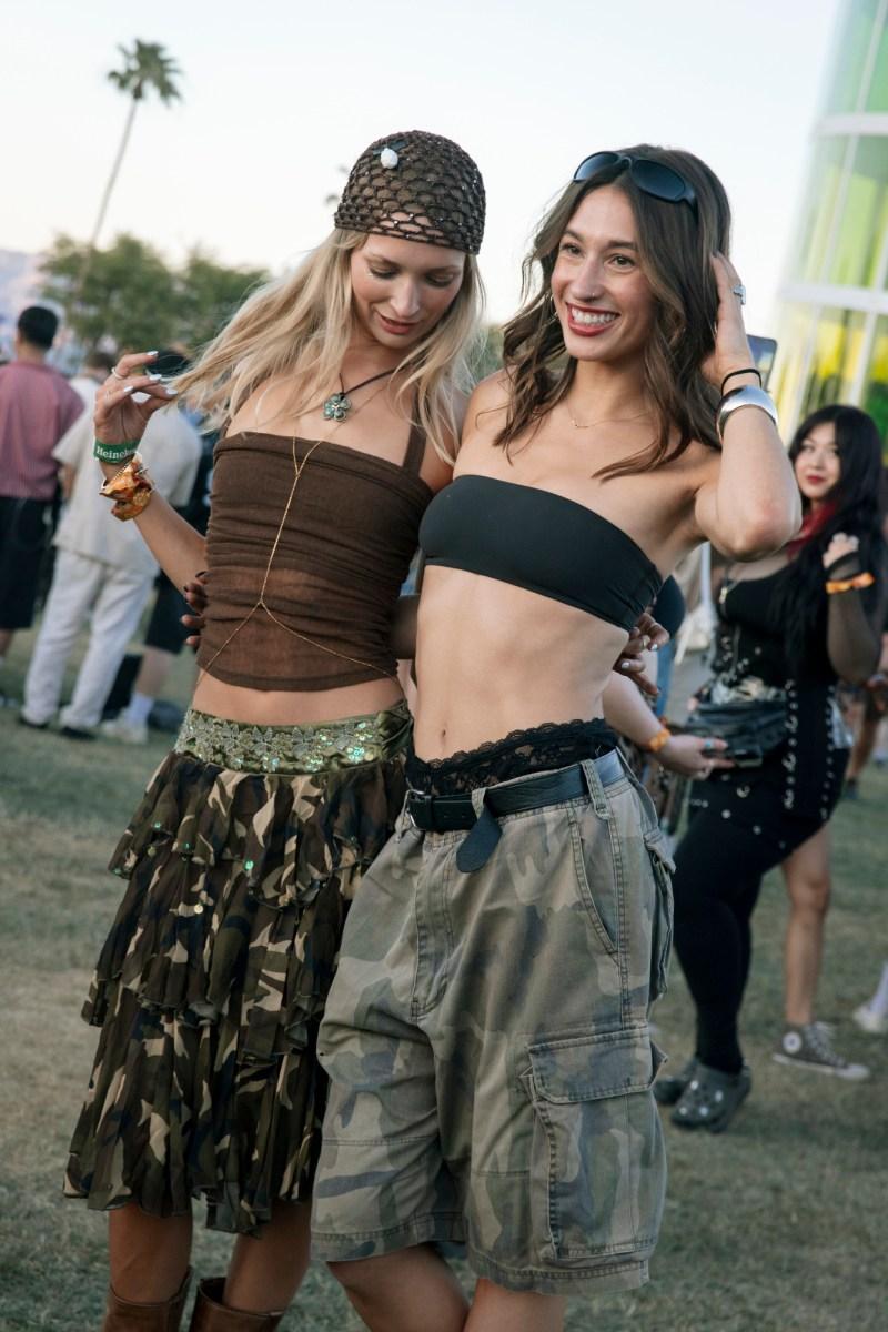 2026年の「コーチェラ」では、ノスタルジックでありながら今を象徴するような、入念に選りすぐられた“砂漠のボヘミアン”スタイルが主流だ。ミニスカートや短パン、ストレッチ素材のデニム、柔らかなレザーのほか、ゆったりとしたバーミューダショーツやジーンズショーツも人気で、ベビーTシャツや透け感のあるトップスとの組み合わせが多く見られた。質感にも重点が置かれており、体の動きに合わせて揺れるタッセルディテール、フリンジをあしらったバッグなどが特徴だ。