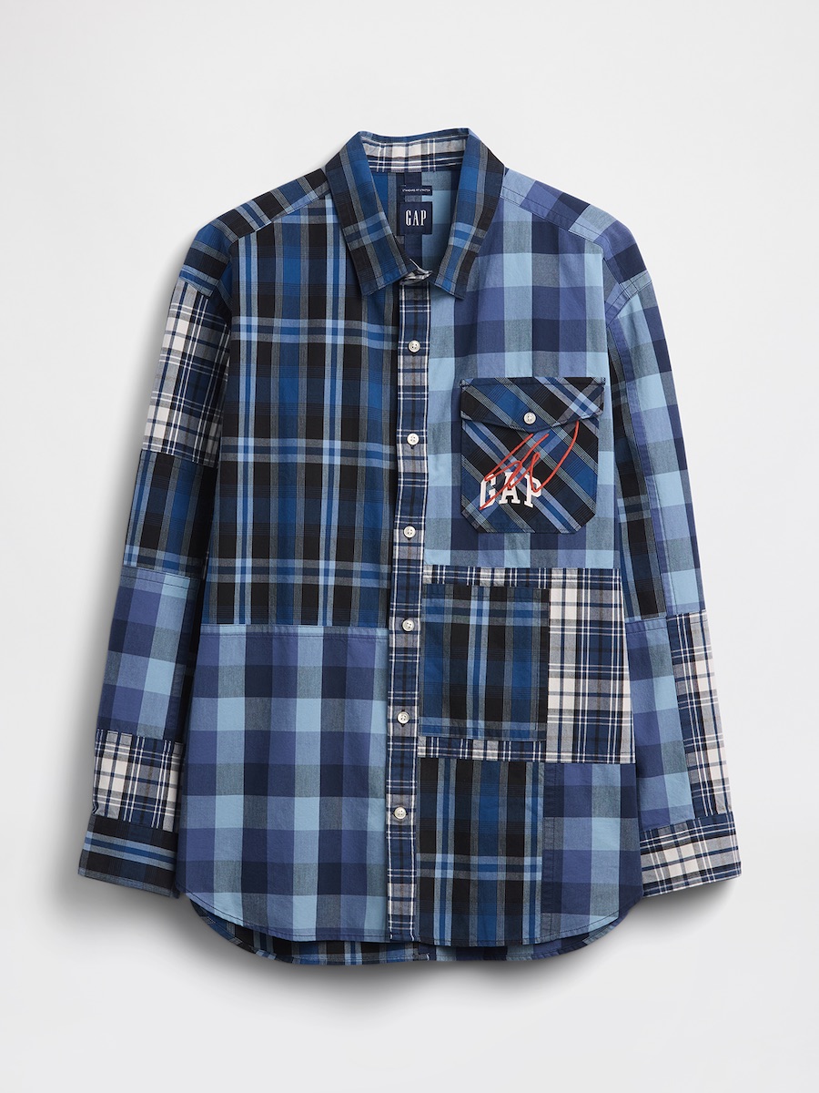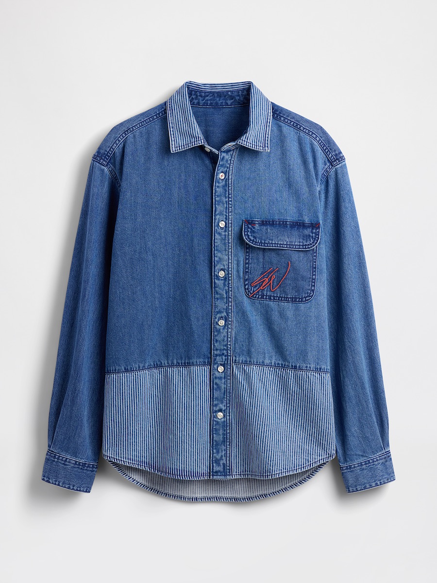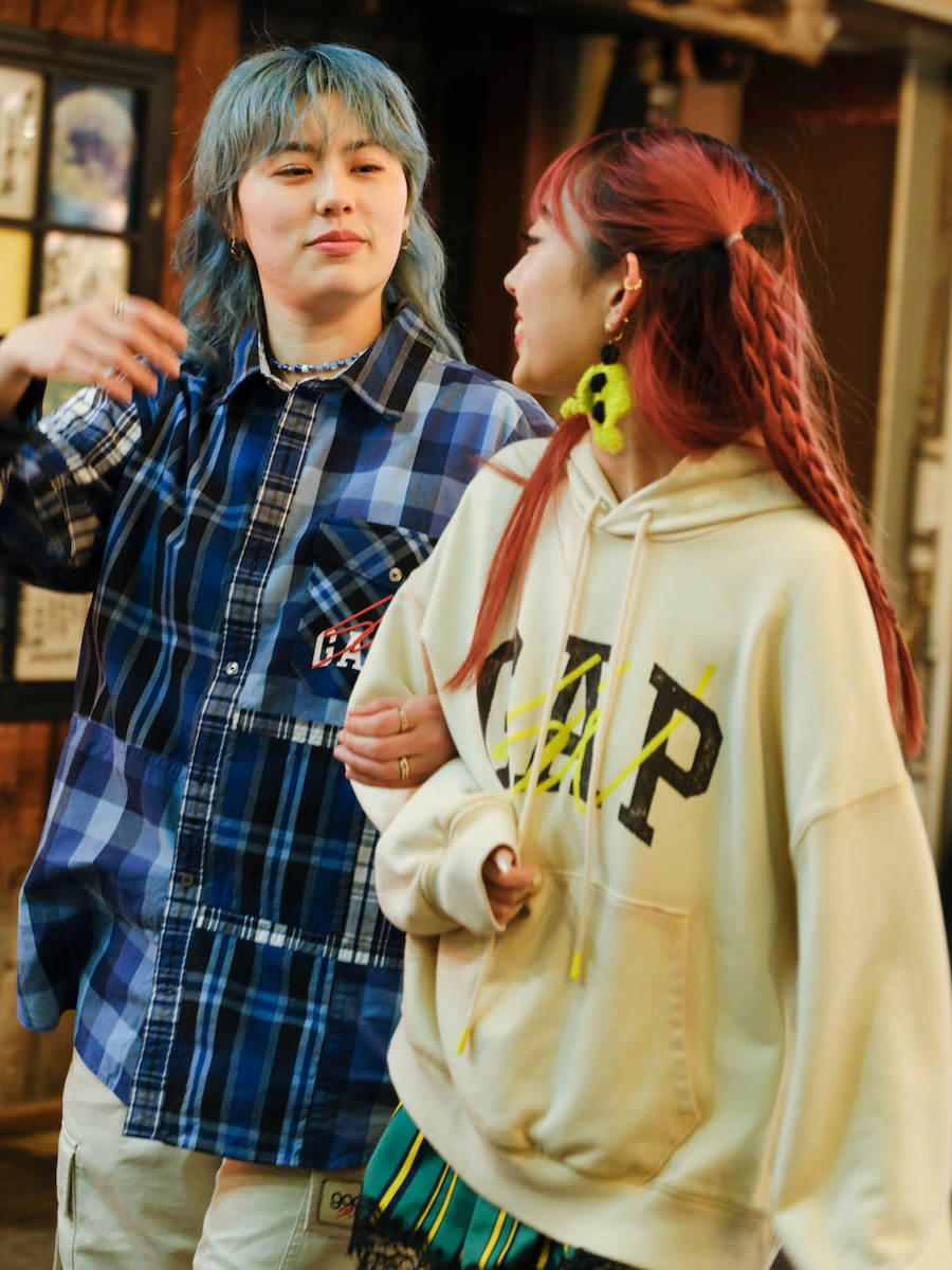 日本のクラフツマンシップの象徴であるデニムを中心に、1990年代後半〜2000年代初期のビンテージ「ギャップ」に着想したアイテム24点を用意した。「ギャップ」のアイコニックな商品をトレンドと現代的なシルエットを通し、ジェンダーレスなデザインでアップデートした。デニムシャツ(2万2900円)やカーゴバギーデニム(1万9900円)、アノラックパーカ(2万4900円)、バギー パッチワーク プレイドショートパンツ (1万4900円)、インディゴ パッチワーク クロップド T シャツ (1万2900円)などを含め、4990円〜2万4900円で展開する。