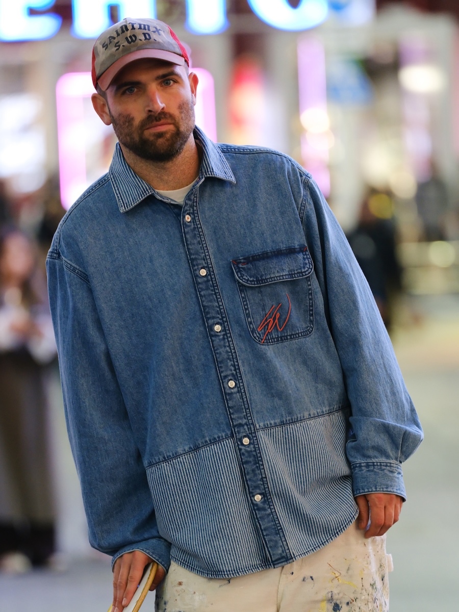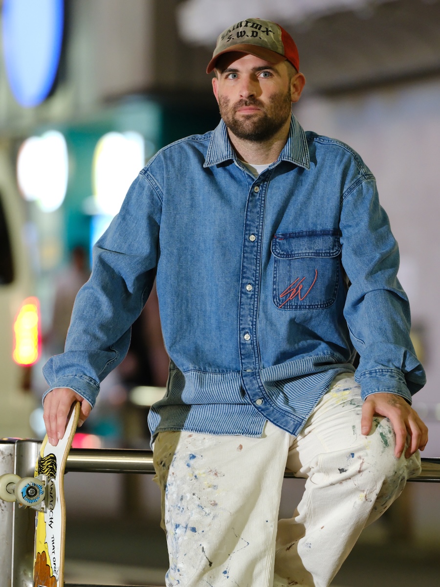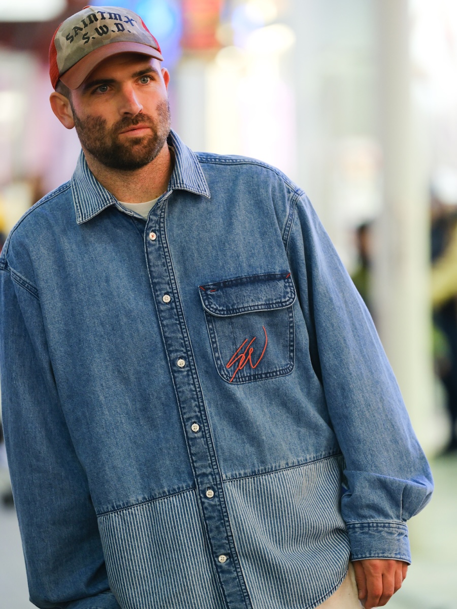 日本のクラフツマンシップの象徴であるデニムを中心に、1990年代後半〜2000年代初期のビンテージ「ギャップ」に着想したアイテム24点を用意した。「ギャップ」のアイコニックな商品をトレンドと現代的なシルエットを通し、ジェンダーレスなデザインでアップデートした。デニムシャツ(2万2900円)やカーゴバギーデニム(1万9900円)、アノラックパーカ(2万4900円)、バギー パッチワーク プレイドショートパンツ (1万4900円)、インディゴ パッチワーク クロップド T シャツ (1万2900円)などを含め、4990円〜2万4900円で展開する。