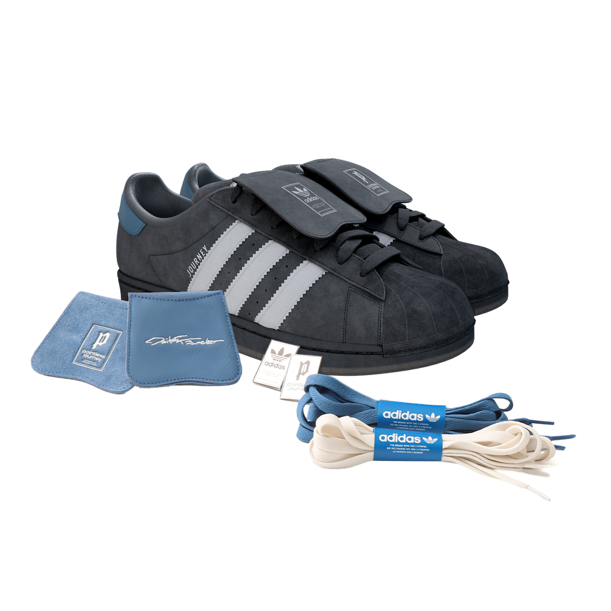 「アディダス オリジナルス(ADIDAS ORIGINALS)」は4月25日、常田大希が主宰するクリエイティブ・プロジェクト「POINTLESS JOURNEY」、「アトモス(ATMOS)」とのトリプルコラボによる“スーパースター II アトモス DTPJ”を発売する。サイズは23.0〜29.0、30.0cmを展開し、カラーはブラックとグレーの2色を用意。価格は1万9800円。A.T.A.D、「アトモス」の一部店舗および公式オンラインストアで取り扱う。なお、発売に先駆けて、4月14日12時から「アトモス」公式オンラインストアと「アディダス」公式アプリで事前抽選を実施する。