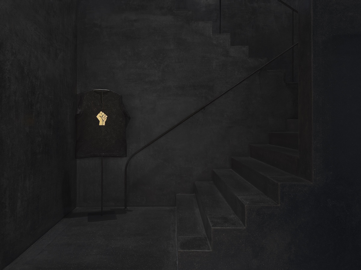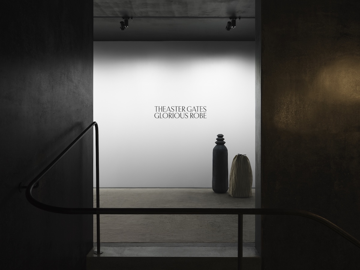 HOSOOは8月30日まで、アーティストのシアスター・ゲイツ(Theaster Gates)とのコラボレーションによる展覧会「シアスター・ゲイツ:Glorious Robe(グロリアス・ローブ)」をHOSOO旗艦店の2階ギャラリーで開催している。両者は2024年に森美術館で開催された「シアスター・ゲイツ展:アフロ民藝」をきっかけに協働を重ねてきており、本展では、その対話の中から生まれた新たな作品を紹介する。