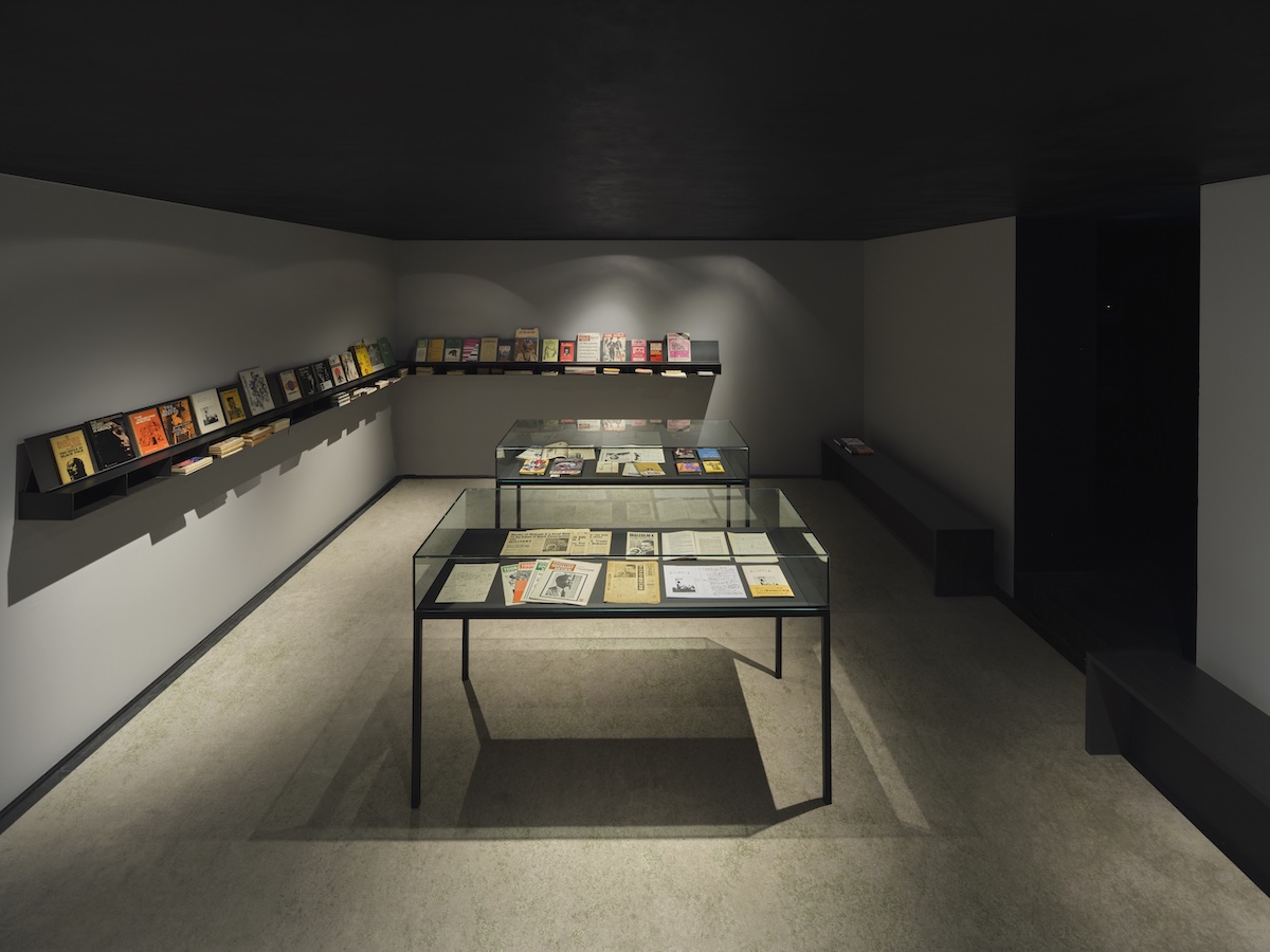 ホワイト・キューブ・バーモンジー開催したゲイツの個展「1965:マルコム・イン・ウィンター 翻訳の試み(1965: Malcolm in Winter: A Translation Exercise)」で初めて公開されたこれらの作品が制作された背景には、ジャーナリストで翻訳家の長田衛とパートナーの石谷春日が執筆・収集したマルコムXに関するアーカイヴの存在がある。2人は1965年2月21日の 暗殺現場に居合わせた体験を契機に、マルコムXに関する翻訳や伝記の刊行を通じてブラック・アメリカの解放運動を日本に紹介してきた。長田の没後も資料の保存と活用に尽力する石谷の姿勢に共鳴したゲイツは、芸術や美学が政治的・思想的・文化的遺産の形成において果たしうる役割について問いを立ててきたという。本展では、永田と石谷による資料の展示スペースも用意した。