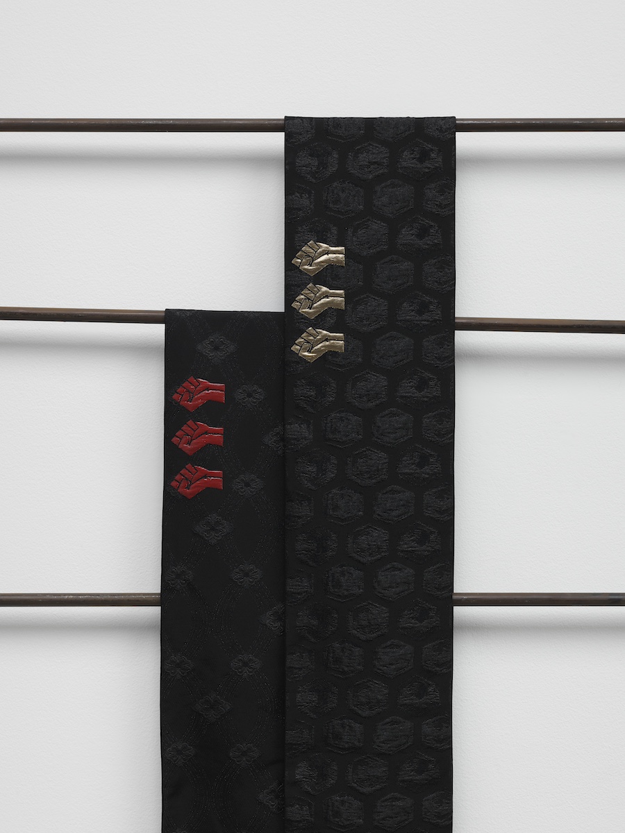 また、ゲイツの代表的なモチーフである「Vessel(器)」や、西陣織の帯を用いた作品も展示する。帯には、故マーティン・ルーサー・キング・ジュニア(Martin Luther King Jr.)牧師やマルコム・X(Malcolm X)、メドガー・エヴァース(Medgar Evers)ら、黒人解放運動の指導者を追悼するモチーフが織り込まれ、工芸を通して歴史や記憶を現代に伝える試みが見られる。