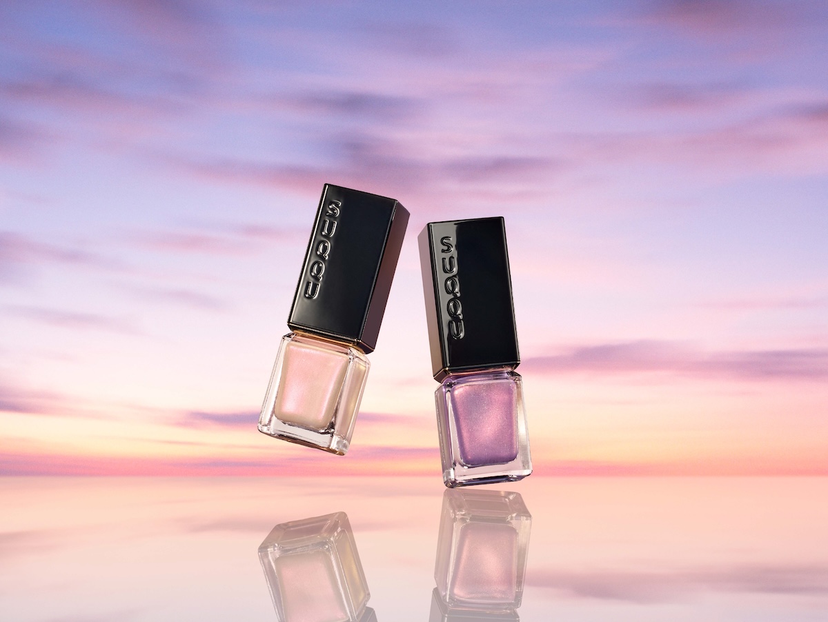 幻想的なマジックアワーを偏光パールで表現した“ネイル カラー ポリッシュ”は2つの限定カラーを用意した。“173 夕染-YUUZOME”は夕陽に照らされた砂浜から着想を得た、レッドパールがアクセントの肌なじみの良いベージュ。艶やかな指先で、手元を上品に彩る。“174 黎旦-REITAN”は、透け感のあるパープルに、華やかなゴールドのパールを配合。華やかさと色気を手元に宿す。