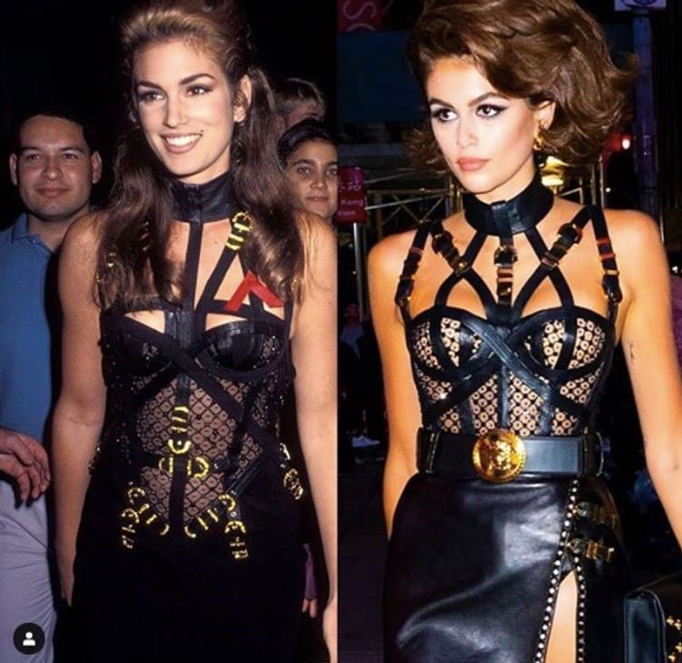 カイア・ガーバー(Kaia Gerber)の18歳の誕生日パーティーでのファッションは、スーパーモデルの母親シンディ・クロフォード(Cindy Crawford)とリンクしたものだった。ガーバーは母親が1992年の「MTVビデオ・ミュージック・アワード(MTV Video Music Awards)」で着用した衣装に似ている「ヴェルサーチェ」のボンデージ風ドレスを着てパーティーを楽しんだ。