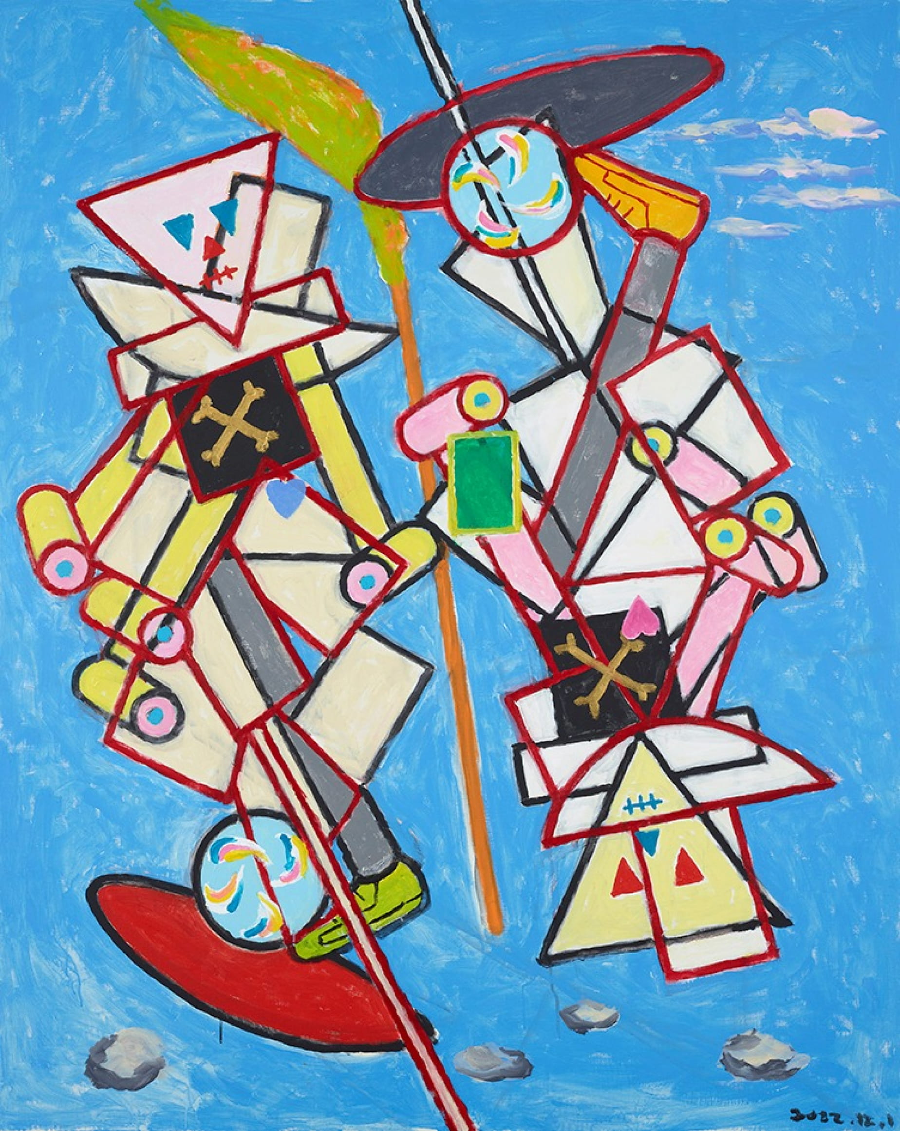 横尾:ダジャレですよね。最後の人達も寒山拾得かもしれない。僕にとっては問題提起ですから、鑑賞者がそれぞれ感じ取ってくれたら良いです。その答えはバラバラでいいんですよね。今はコンセプチュアルでないと現代美術の最先端に立てないでしょう。僕は頭の中を空っぽにして、阿呆になりなさいって言ってるわけだから、およそ水と油です。だけど、その間にいるのは鑑賞者で、どちらを選択するのかはその人の自由ですよね。ところが僕の絵は頭で見ようとしても見られない。そこで初めて空っぽになるわけだから。そういう意味では2通りあっていいんじゃないかな。