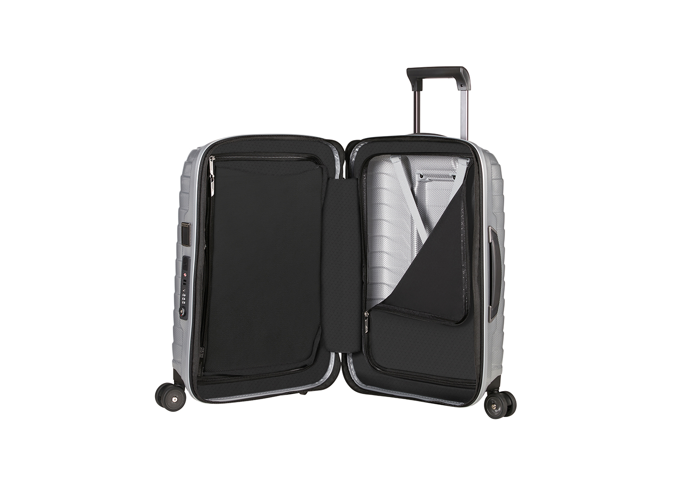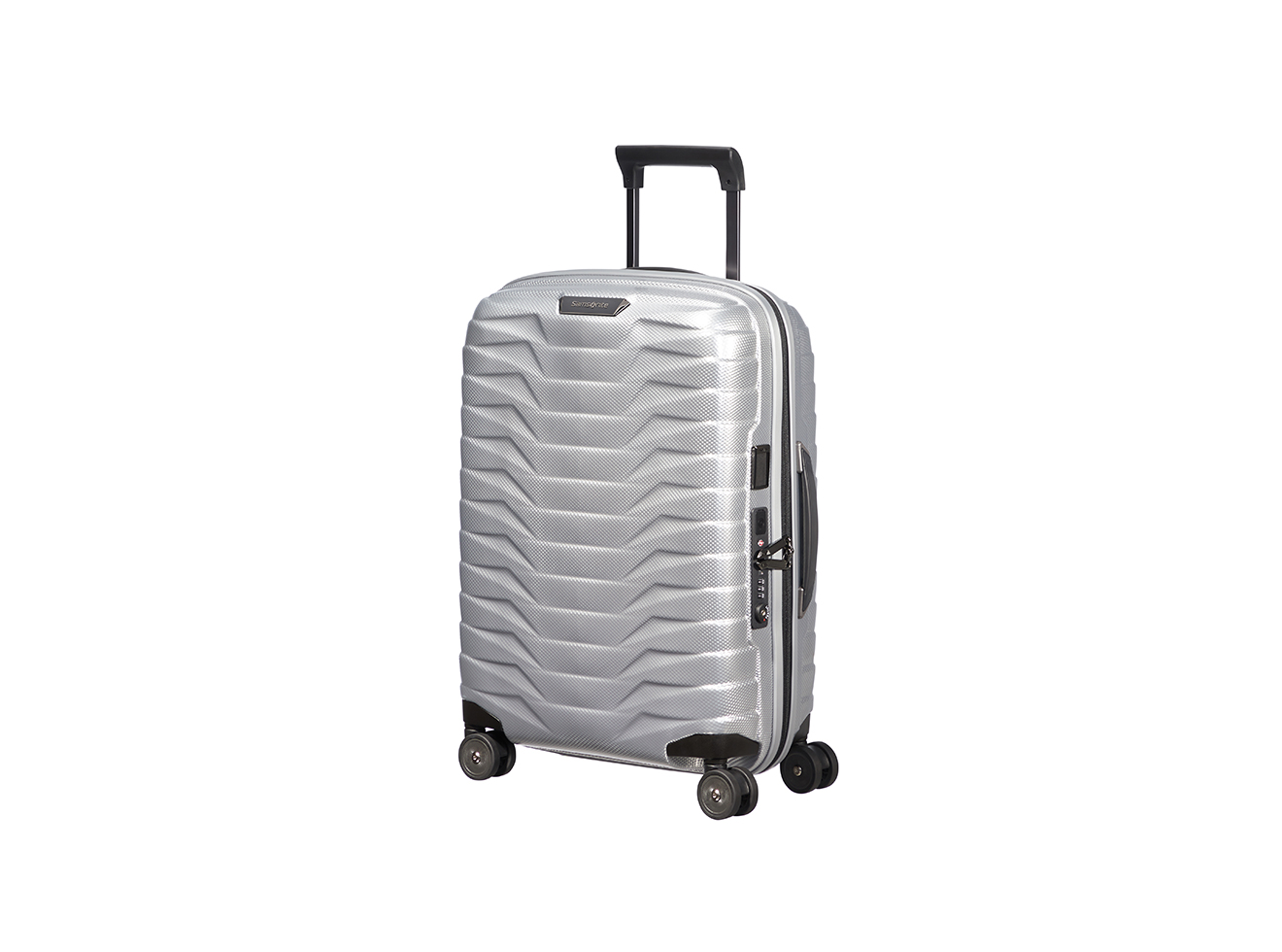 超軽量で復元力に優れた最新シリーズ“プロクシス”。3色3サイズ展開のシリーズのうち、わずか2.2kgと軽量なシリーズ最小モデルは、軽やかに持ち運びができる機内持ち込み可能なサイズだ。移動中に充電可能なUSBポートが付属する