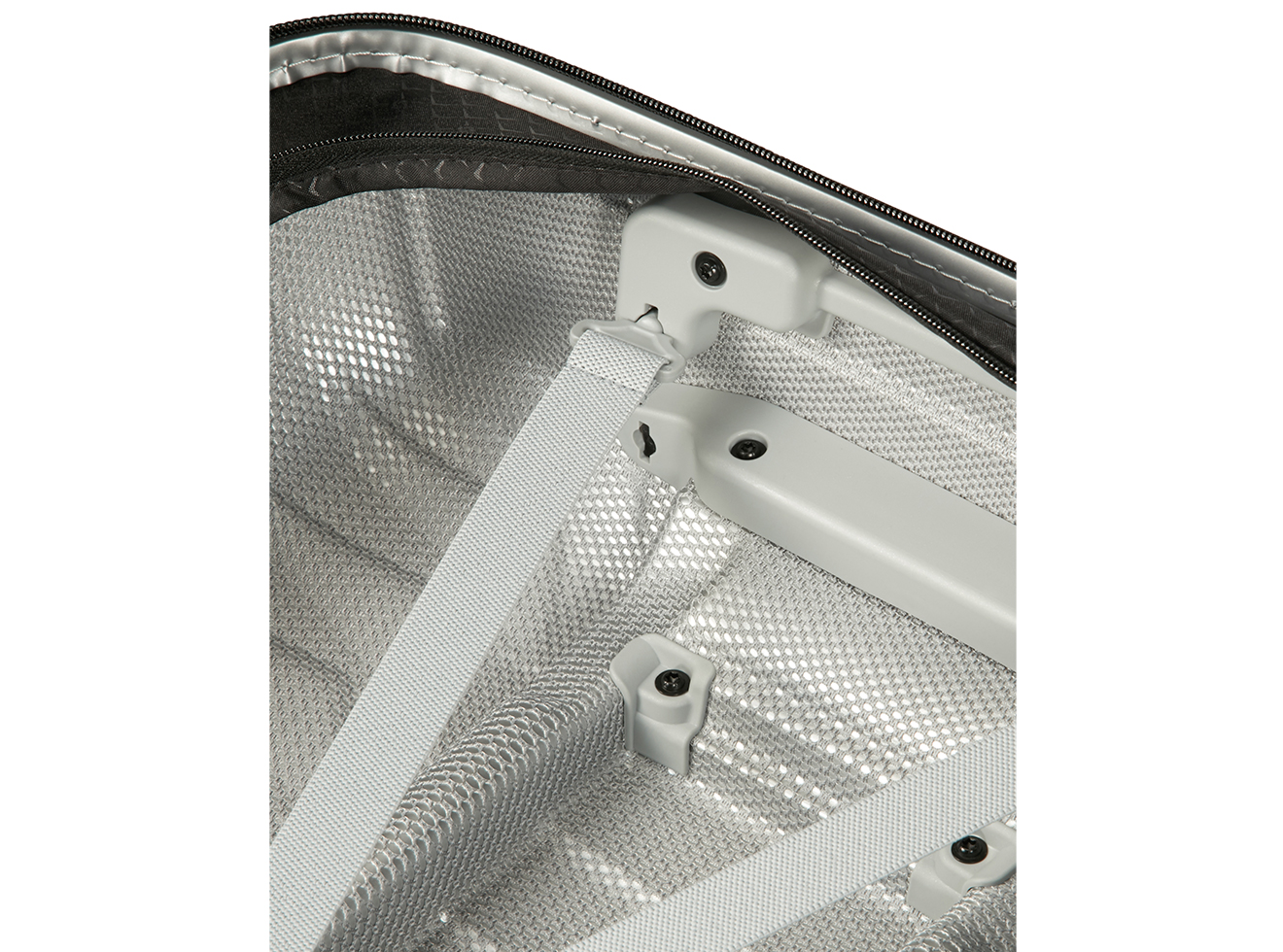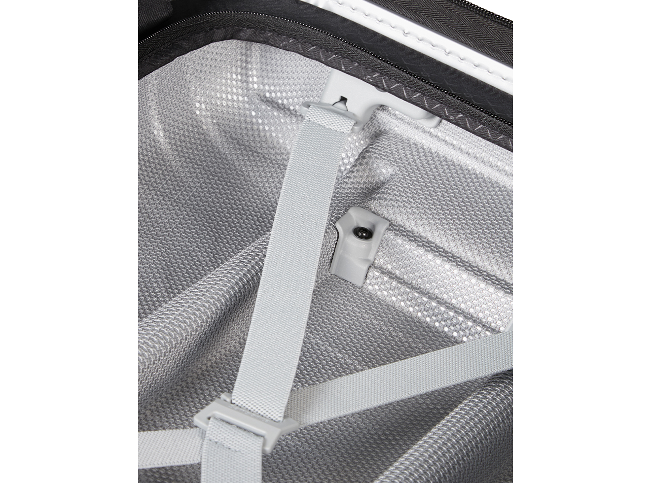 1週間以上の長期の旅行や出張に最適なシリーズ最大サイズは、独自開発の軽量素材を用いることで98L容量にして2.9kgとかなり軽量。大きなスーツケースにありがちな荷崩れは、内装に施されたクロスリボンの高さを調整すれば解決