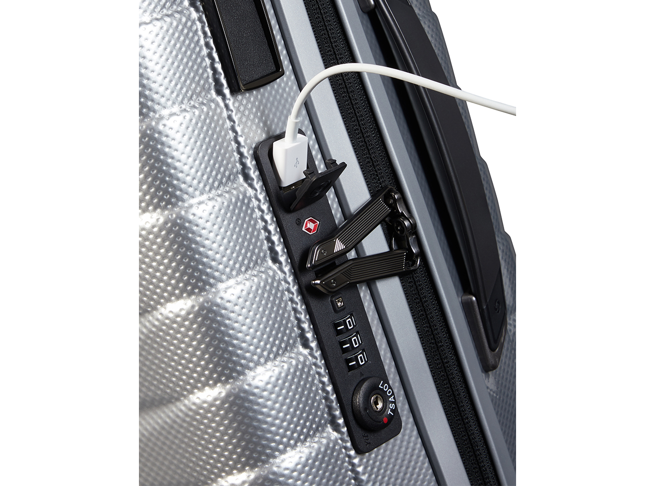 TSAロックの隣にはUSBポートが付属し、手持ちのモバイルバッテリーを内装の専用ポケットにセットすれば移動中も充電が可能