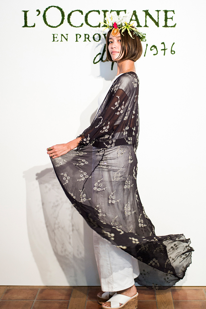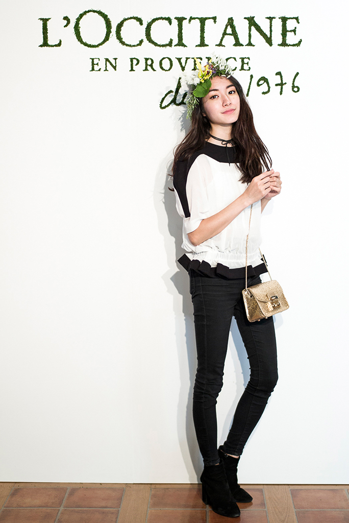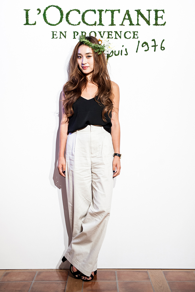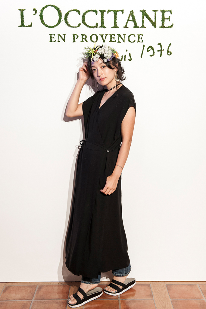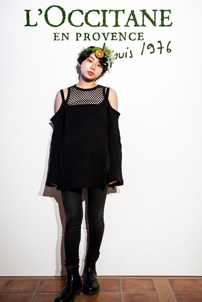 ロクシタンカフェ 渋谷店では、インフルエンサーたちはグリーンティアラを手渡された。同店の2階にはなんとハーブ畑が作られていて、「ファイブハーブス リペアリング」シリーズに使用されている、アンジェリカ、ラベンダーなどのハーブが……。インフルエンサーたちはそれらのハーブをつみ、グリーンハーブに差し込むことでオリジナルのティアラを作った。ちなみに、イベントに参加した道端アンジェリカは、自分の名前と同じハーブが、製品のキーハーブとして使われていることに驚き、「私も(ハーブの)アンジェリカみたいに艶っぽい女性にならないと(笑)」と話していた。