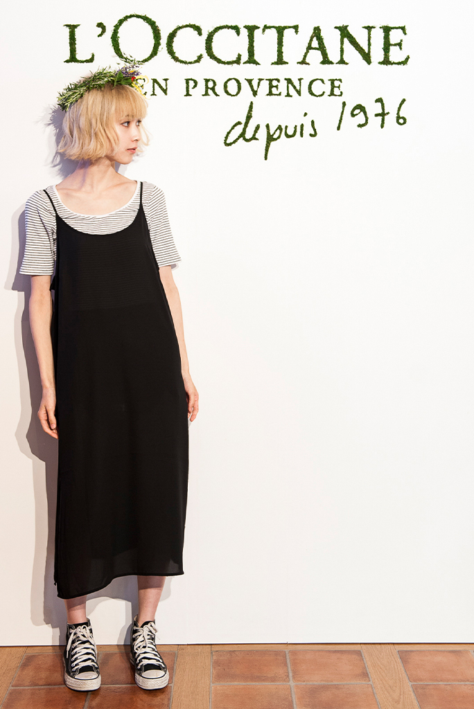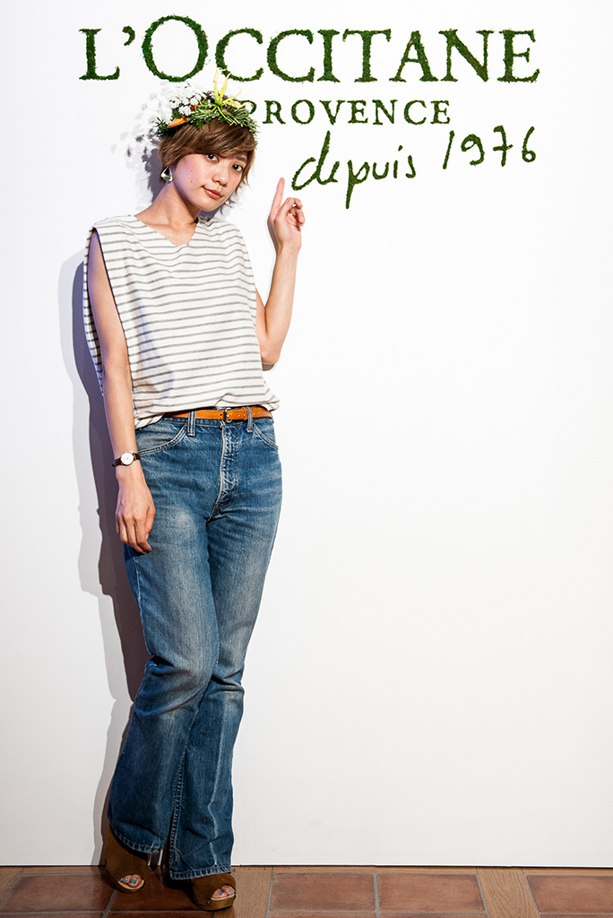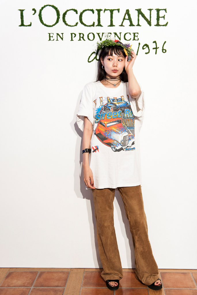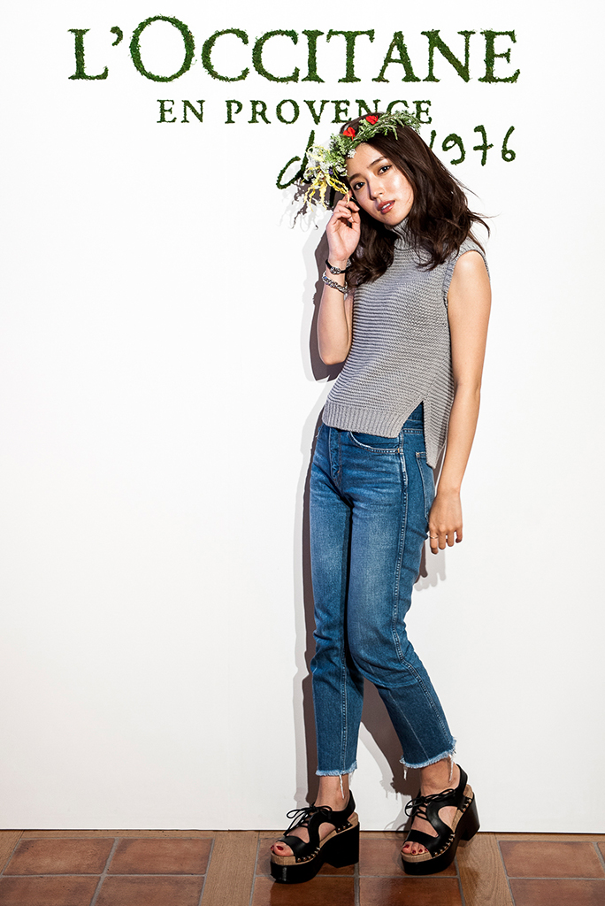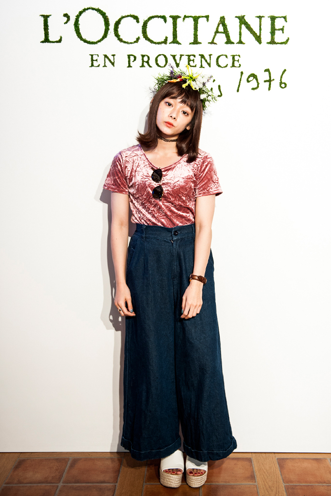 ロクシタンカフェ 渋谷店では、インフルエンサーたちはグリーンティアラを手渡された。同店の2階にはなんとハーブ畑が作られていて、「ファイブハーブス リペアリング」シリーズに使用されている、アンジェリカ、ラベンダーなどのハーブが……。インフルエンサーたちはそれらのハーブをつみ、グリーンハーブに差し込むことでオリジナルのティアラを作った。ちなみに、イベントに参加した道端アンジェリカは、自分の名前と同じハーブが、製品のキーハーブとして使われていることに驚き、「私も(ハーブの)アンジェリカみたいに艶っぽい女性にならないと(笑)」と話していた。