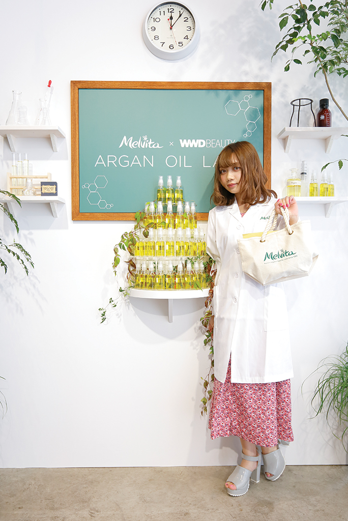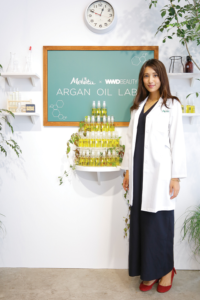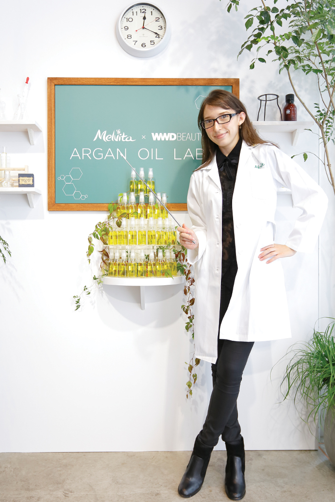 「メルヴィータ」が10月4日、「アルガンオイルラボ」と題したイベントを虎ノ門ヒルズのフレンチレストラン、ピルエットで開催した。講師に、森田敦子・植物療法士を招き、ベストセラーの「アルガンオイル」の知られざる魅力を講義。森田“博士”が体の不調に悩んでいたときに、フランスに渡り、植物療法と出合い、アルガンオイルに助けられたことなどが語られると、集まったゲストたちは真剣なまなざしに。さらには、“化粧水ごくごく”アルガンオイルの実験では一堂に驚きの表情が。最後は、ピルエット特製のオイルを使った特別メニューの“給食”に、舌鼓を打った。