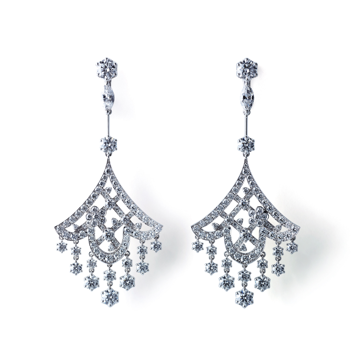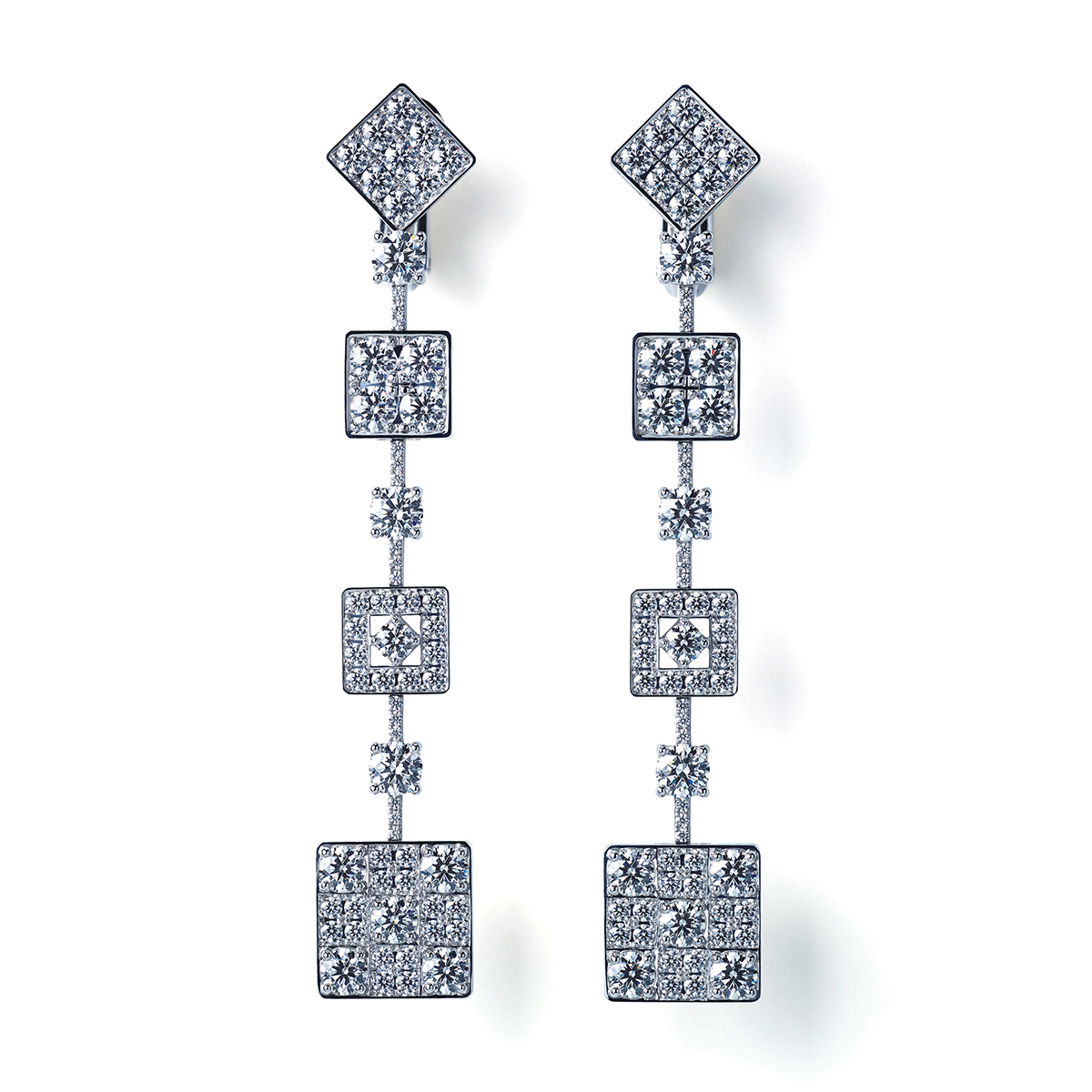 雨上がりに輝く京の石畳から着想を得たデザイン。石畳を表す正方形のパーツに大きさの異なるダイヤモンドを4つのパターンで敷き詰め、変化のある輝きを表現している。