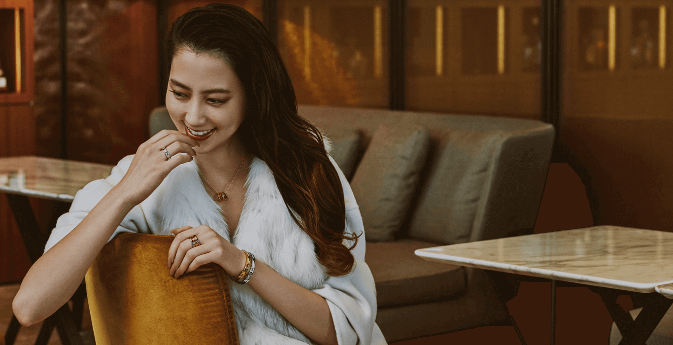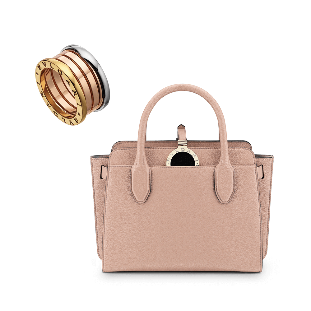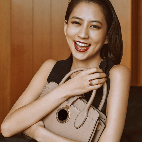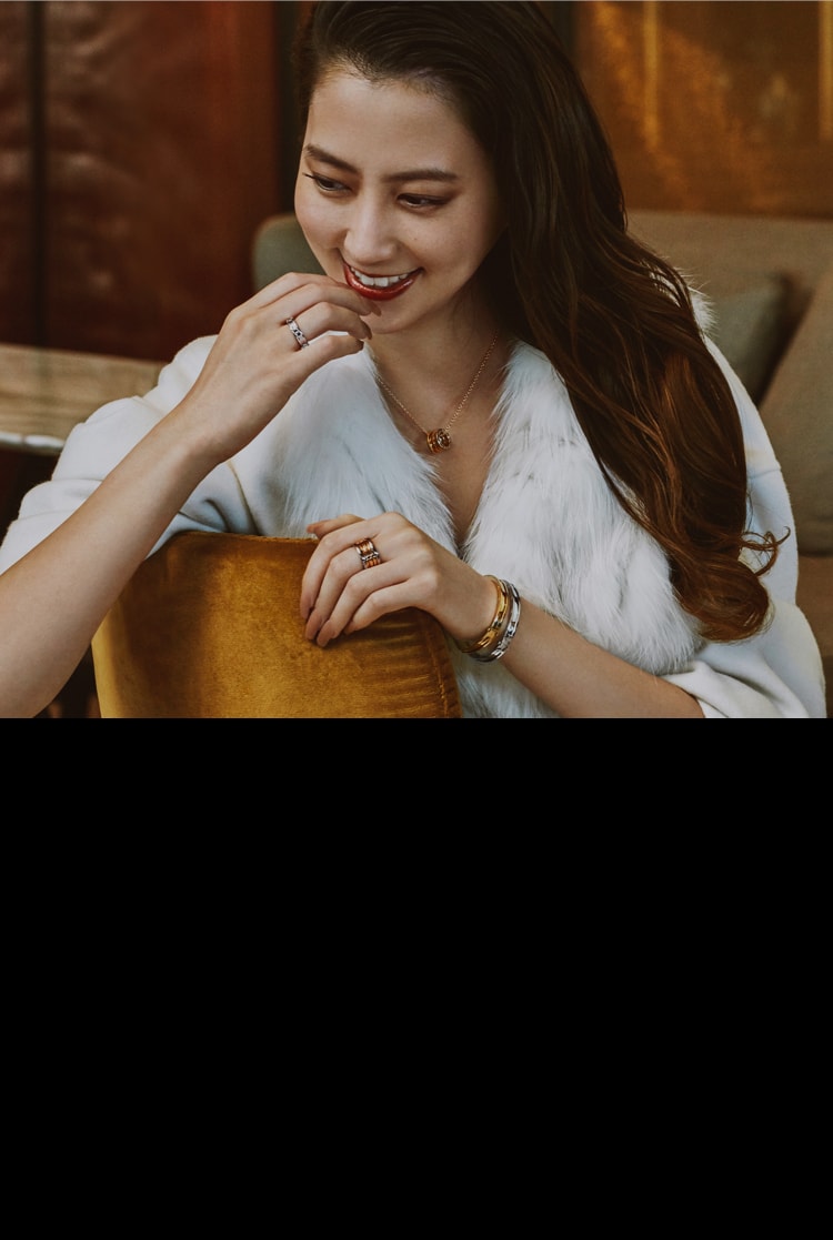 実は、私の初めての「ブルガリ」は、“ビー・ゼロワン”のホワイトゴールドのリング。“パーフェクト ミステイク”は、一緒に重ね着けしたら、贅沢に3色のカラーが楽しめていいなって。ひとつでもインパクトがあるし、いろんな表情があるのが魅力です。バッグは、何といってもこのヌードピンクが今の私の気分にぴったり。高級感のあるデザインと色の抜け感のバランス、本当に素敵です。