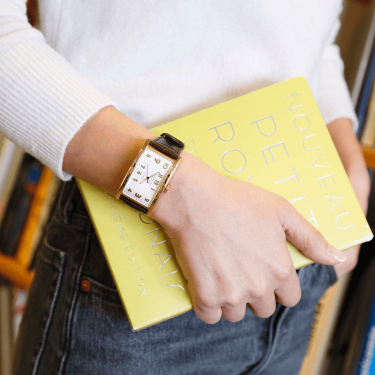 「基本的にシンプルな着こなしが好きなので、アクセントになるジュエリーや小物にはこだわります。この時計はベーシックながらキャッチーなフェイスデザインという絶妙なバランス感に惹かれました。ここ『イートミー ギャラリー』は、デザインスタジオとギャラリーが融合した、知る人ぞ知る注目のスポット。撮影終わりの午後に打ち合わせなどでよく訪れるのですが、居心地の良さが好き。リラックスできる場所の一つです」