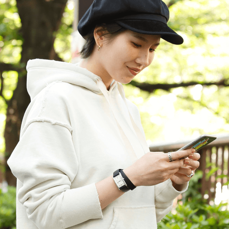 「中目黒は私のお気に入りの街。昼間に目黒川沿いをゆっくり散歩しながら過ごしたり、ショッピングしたり、なんでも楽しめるステキな場所です。おいしいお店がたくさんあるのもポイントが高いですね。デートの時は、普段通りのカジュアルスタイルが私流。ただ、時計は一生大事にできる上質なものをずっと使っていたい派です。トレンドを追うよりも自分の軸を持っていたいので、それが服装にもデザインの仕事にも表れているのかも」