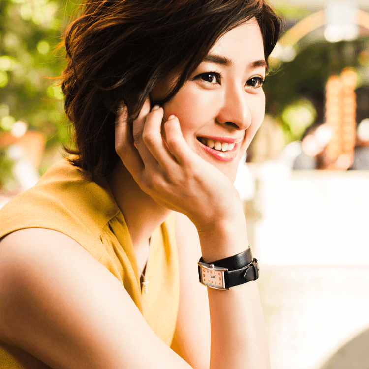 「撮影が早めに終わった午後は、テラス席が気持ち良いレストランで軽めの食事とシャンパンをいただくのが私のハッピーアワー。気になる男性とブランチデートというのもアリですね(笑)。こういった特別な日は、フェミニンなカシュクールトップスをチョイス。今季トレンドのマスタードイエローは、デニムと好相性なんです。仕上げに上品なブラックストラップの時計で引き締めれば、大人の女性らしいクラス感のあるスタイルが完成!」