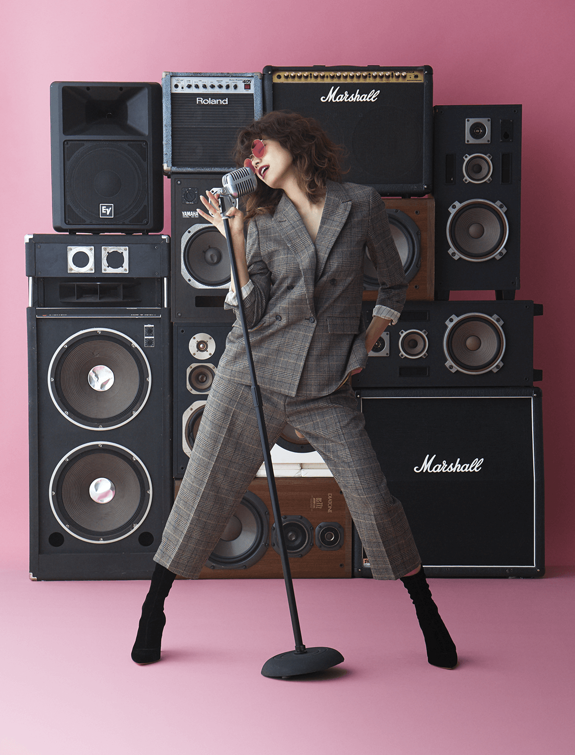 「音楽とダンスって、人と人を繋げる大事なコミニュケーションツールだと思う。年齢や環境、趣味が違っても音楽があるだけで、みんなで楽しく過ごせるし、盛り上がってくると、一緒にダンスしちゃうことも(笑)」。5人兄弟の末っ子として無邪気に育った彼女は、持ち前の明るさで人と人を繋げる架け橋のような存在になりたいと語る。「私にとって大事な存在は家族と友達。そして支えてくれるスタッフの方たち。音楽をシェアすることで、聴いてきたジャンルや時代背景は異なっても、相手の環境やセンスを知ることができるし、お互いが開放的になれる瞬間だと思う」。この日も、彼女自身がセレクトした70年代ディスコミュージックで撮影中は終始ハッピームードに!