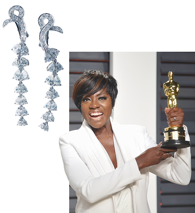 毎年アカデミー賞授賞式後、同日に開催される、米国のエンターテインメント誌「ヴァニティ・フェア(Vanity Fair)」主催によるアフターパーティーでもヴィオラ・デイヴィスは、「NIWAKA」のイヤリングを着用して登場。授賞式とは対照的な白のパンツスーツに、揺れるダイヤモンドのイヤリングがマッチ。