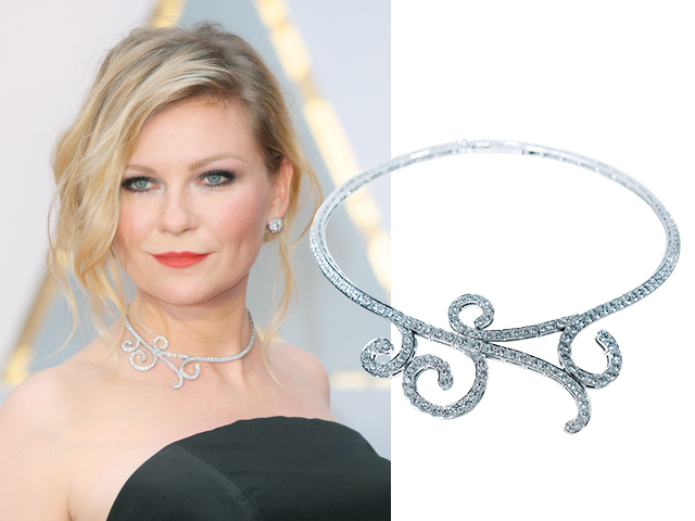 “唐花(からはな)”は古代エジプトに生まれ、8世紀に日本に伝わり、日本独自の形として発展した想像上の花。デコルテに沿うように曲線を描く蔓は、「無限の美」を表現。「ディオール」のクラシックなブラックドレスに、“唐花”のネックレスをアシンメトリーに着け話題に。