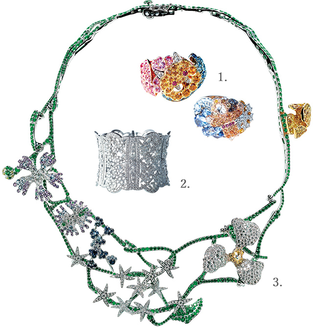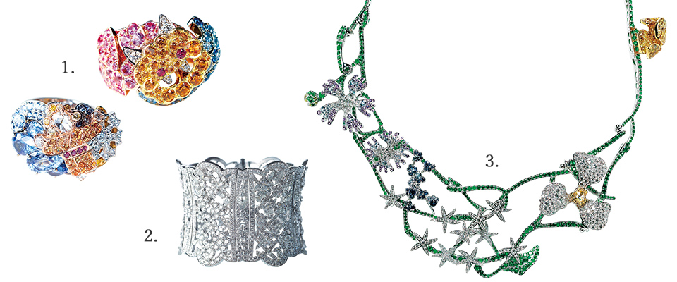 - 3.野に咲く可憐な草花を生けた“生け花”がモチーフのコレクション“花籠(はなかご)”。立体的に交差した細い茎に大小さまざまな大きさの花が咲くデザイン