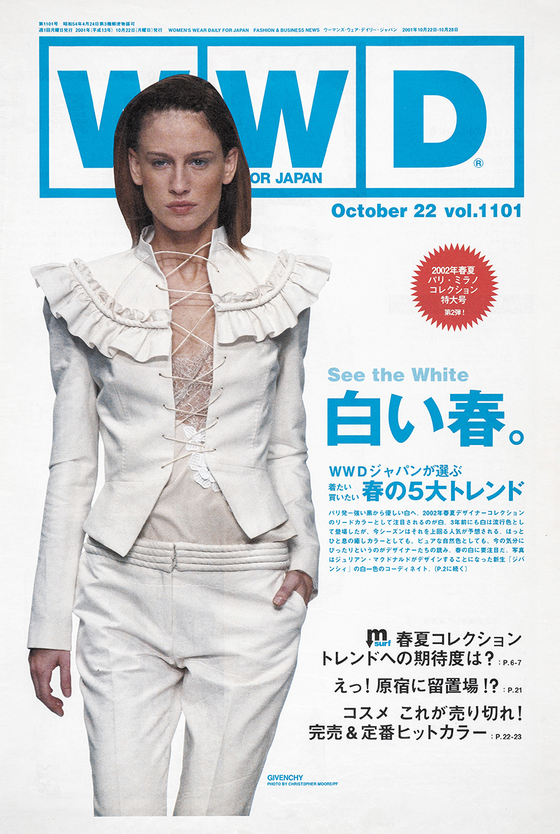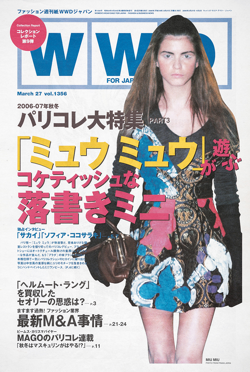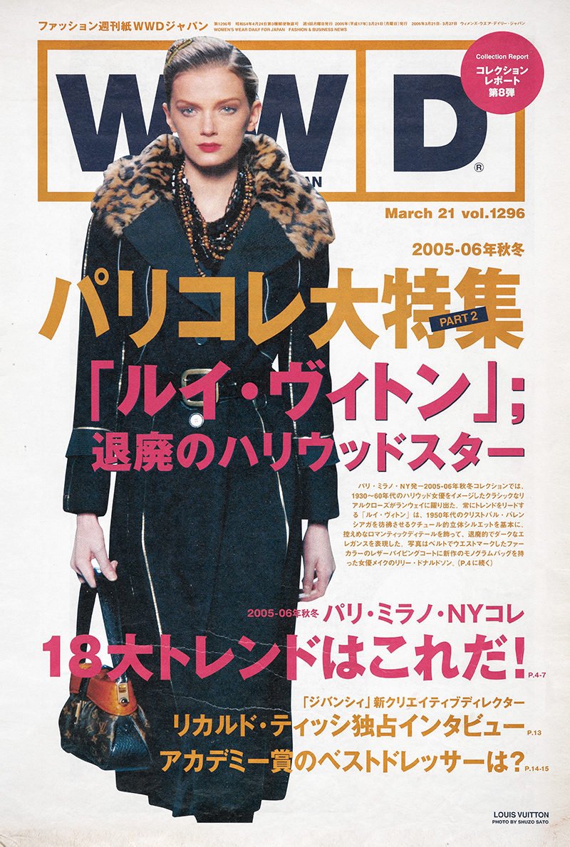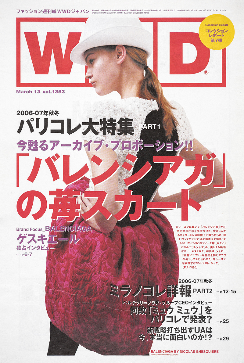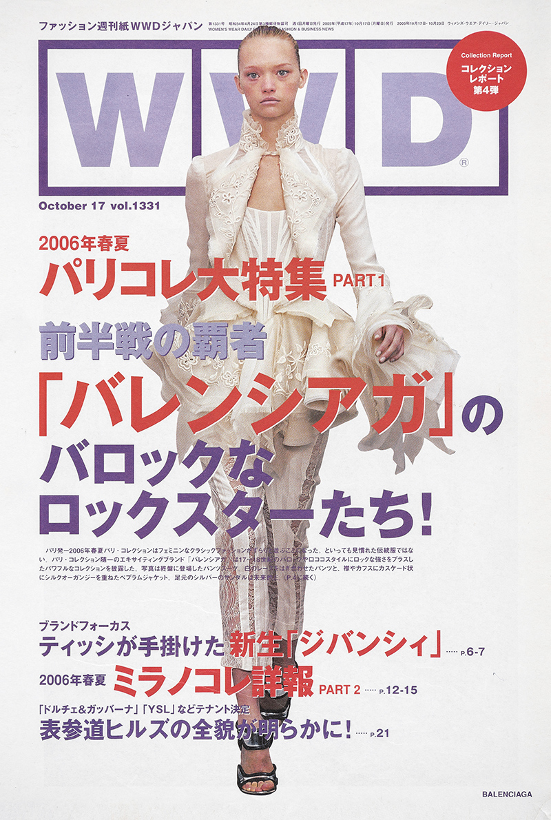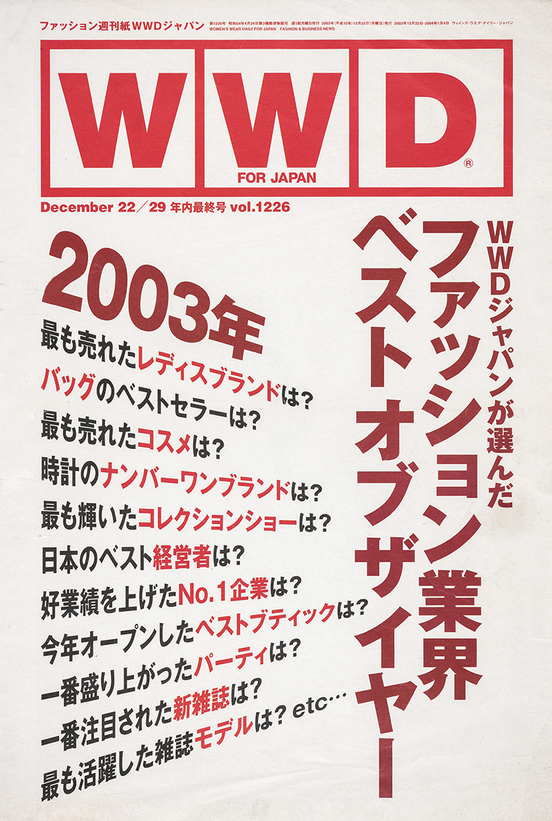 情報化が進み、消費者の価値観や嗜好が細分化した2000年代は、世界を席巻するようなメガヒットやトレンドに乏しかった。そんな中から“ニュースなファッション”をピックアップ。「ランバン」のアルバール・エルバス、「エルメス」のジャンポール・ゴルチエによるファースト・シーズンはもちろん、「ミュウミュウ」のパリコレ・デビューや「ディオール」のリアルクローズ路線など、欧米の話題のショーを網羅。また、「ウィメンズ・ウエア・デイリー」ながら、メンズにも注目。男性だけでなく、女性の関心も集めたエディ・スリマンによる「ディオール オム」の功績は大きいだろう。東京発のブランドも、現在はパリコレの常連として名を連ねる「サカイ」や「アンダーカバー」など、旬なブランドをいち早く取り上げた。