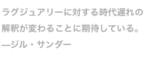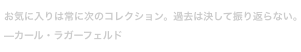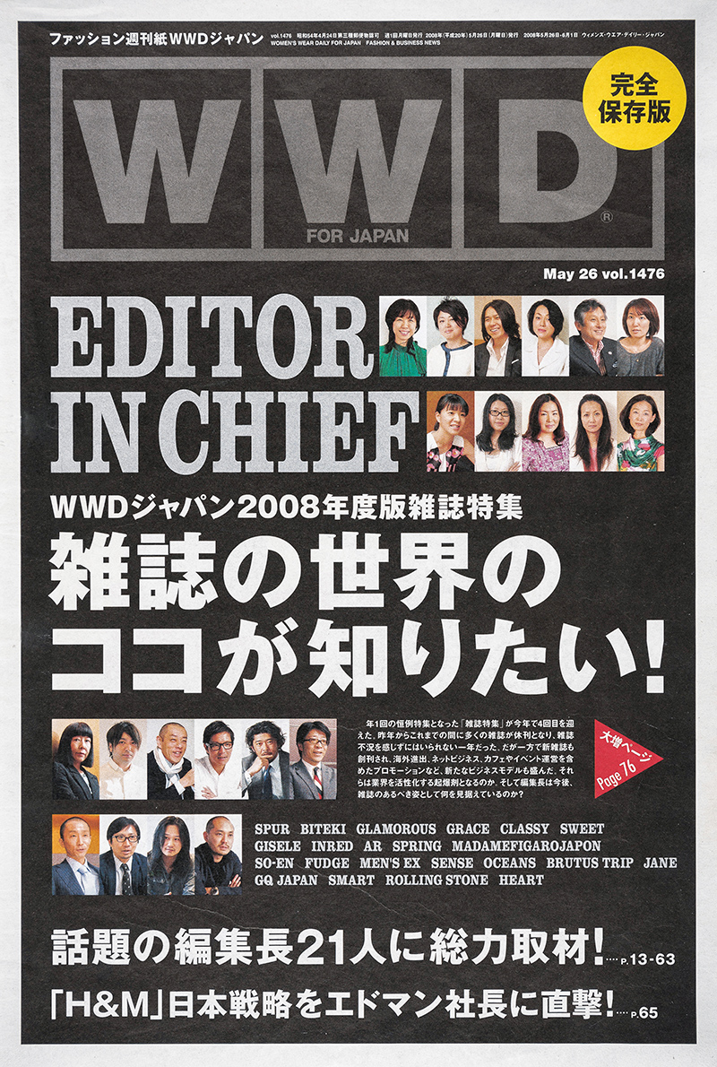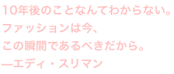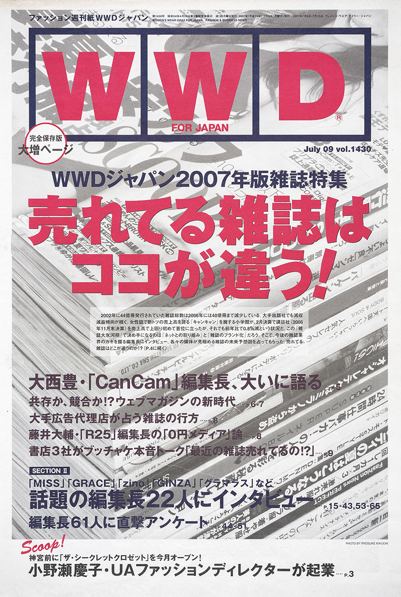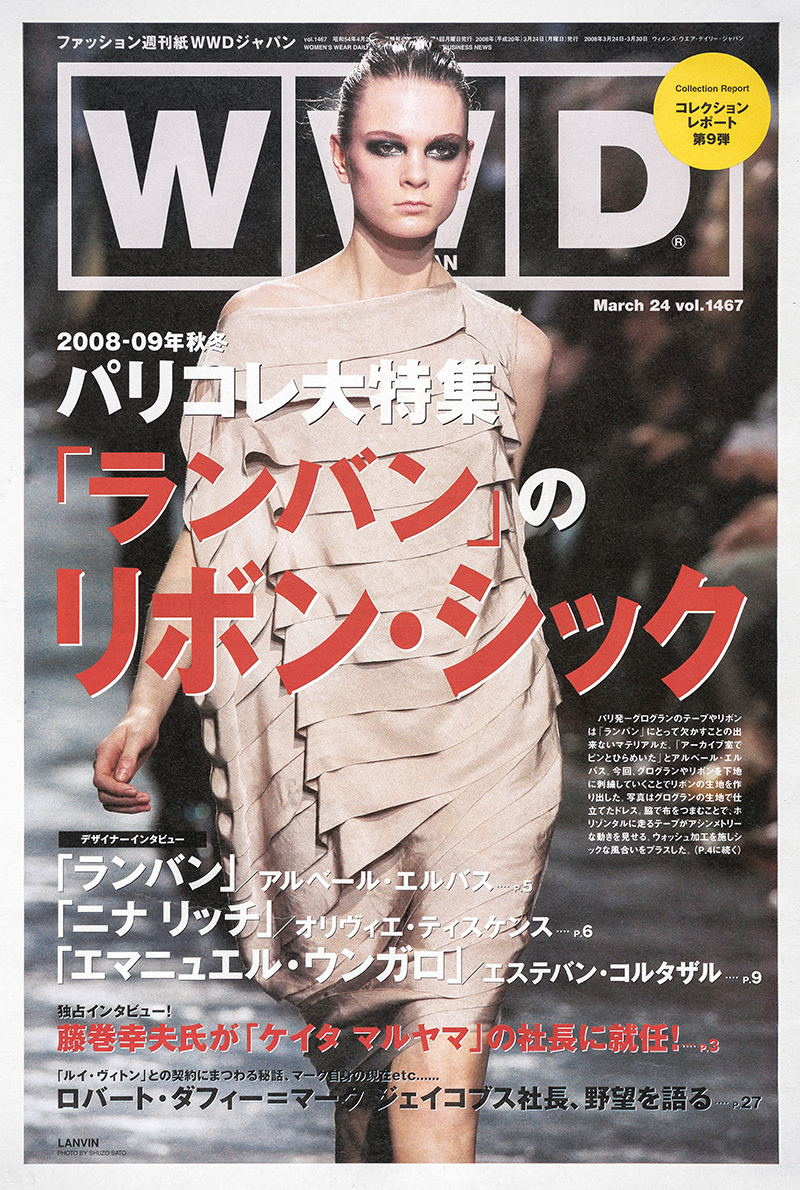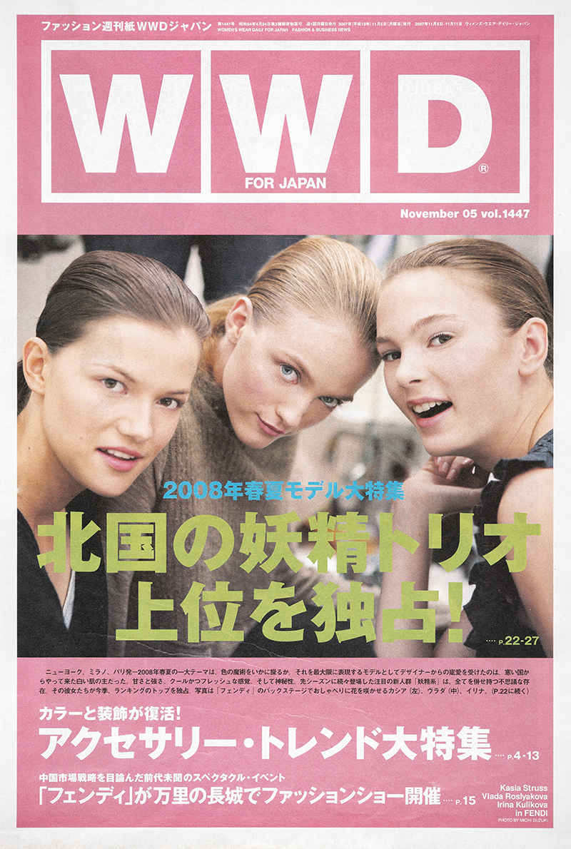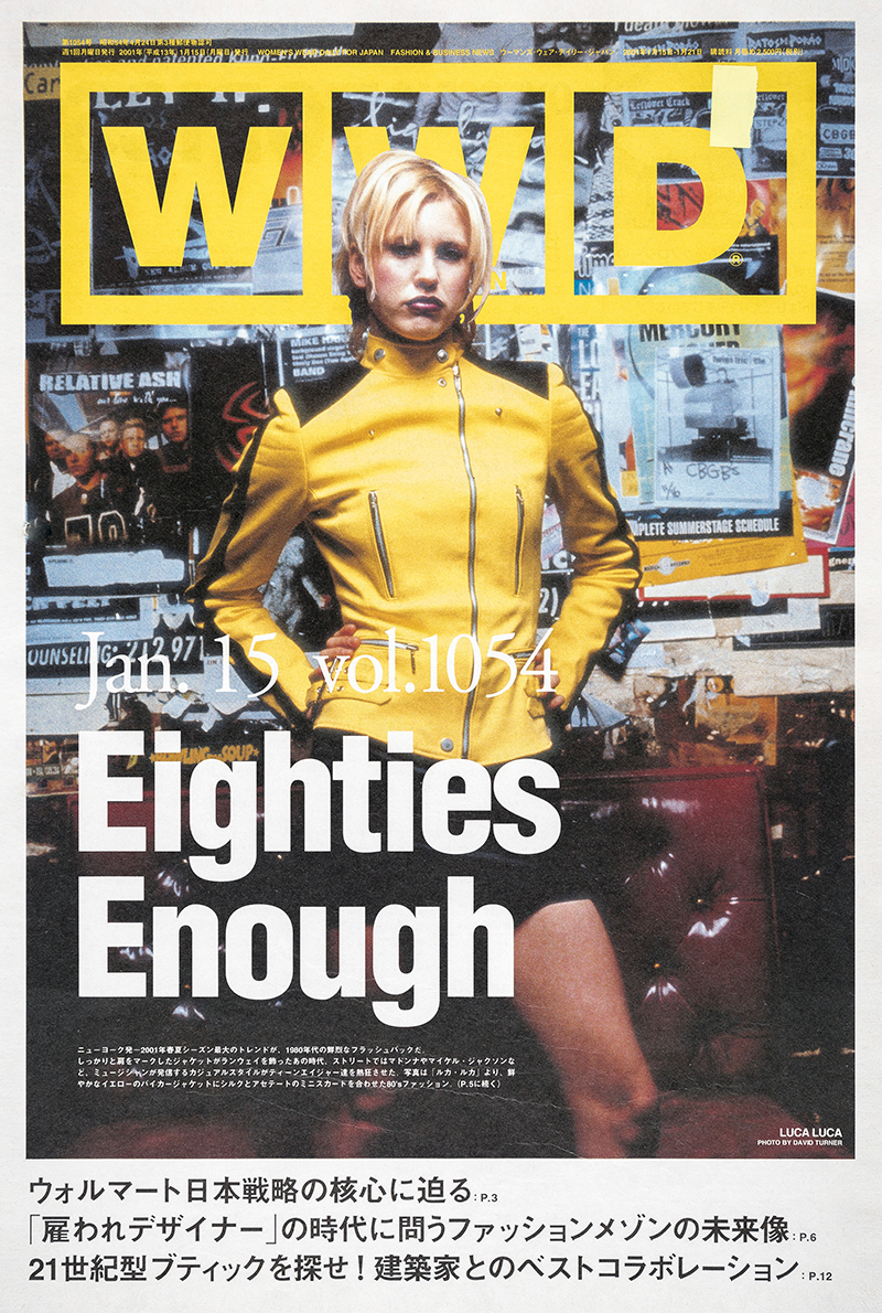 情報化が進み、消費者の価値観や嗜好が細分化した2000年代は、世界を席巻するようなメガヒットやトレンドに乏しかった。そんな中から“ニュースなファッション”をピックアップ。「ランバン」のアルバール・エルバス、「エルメス」のジャンポール・ゴルチエによるファースト・シーズンはもちろん、「ミュウミュウ」のパリコレ・デビューや「ディオール」のリアルクローズ路線など、欧米の話題のショーを網羅。また、「ウィメンズ・ウエア・デイリー」ながら、メンズにも注目。男性だけでなく、女性の関心も集めたエディ・スリマンによる「ディオール オム」の功績は大きいだろう。東京発のブランドも、現在はパリコレの常連として名を連ねる「サカイ」や「アンダーカバー」など、旬なブランドをいち早く取り上げた。